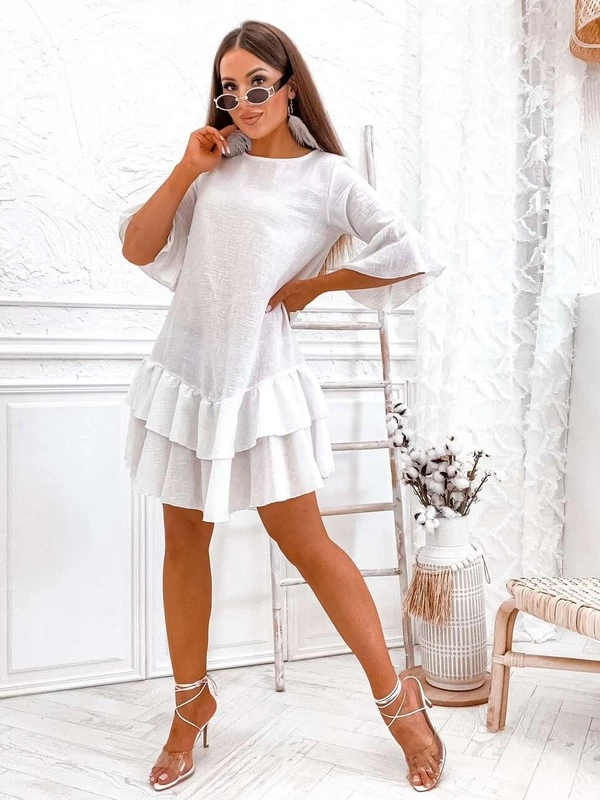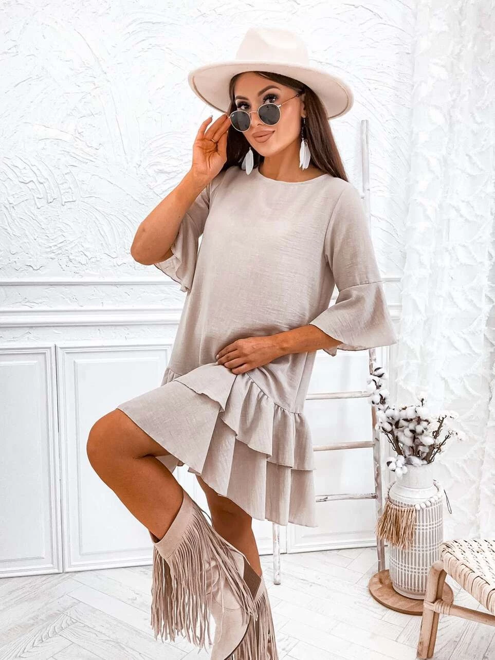 Bawełniano lniana Sukienka z falbaną Flare Flow