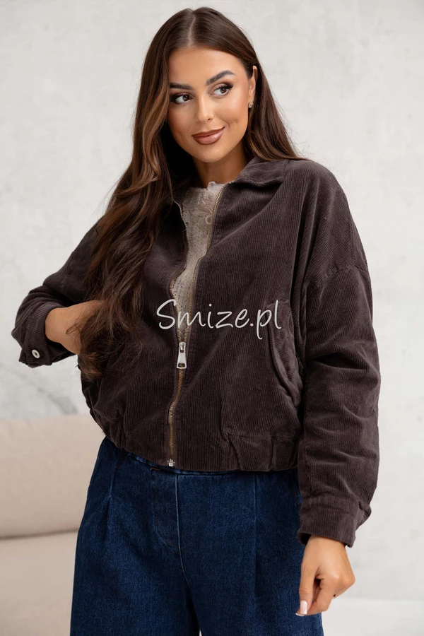 Sztruksowa kurtka damska bomberka z suwakiem NEST czekoladowa