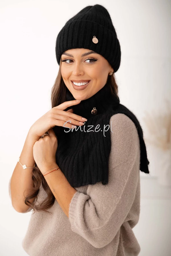 Komplet Czapka i komin z golfem, z angory i wełny / czarny