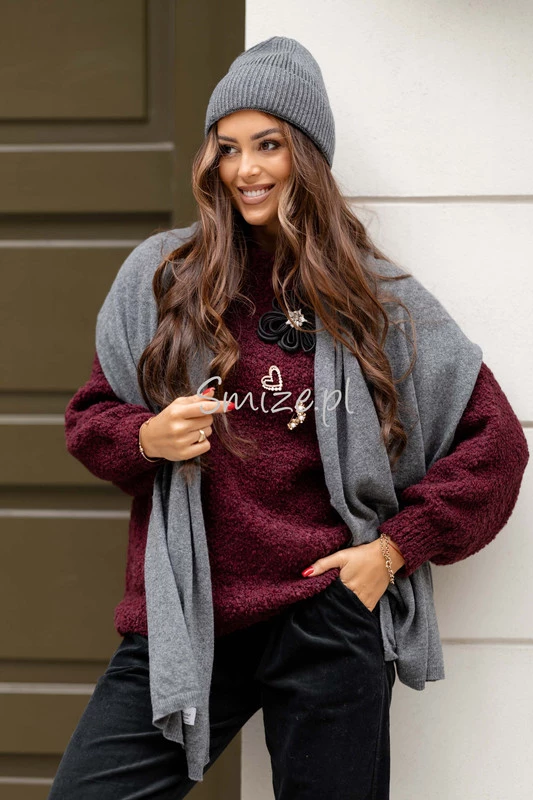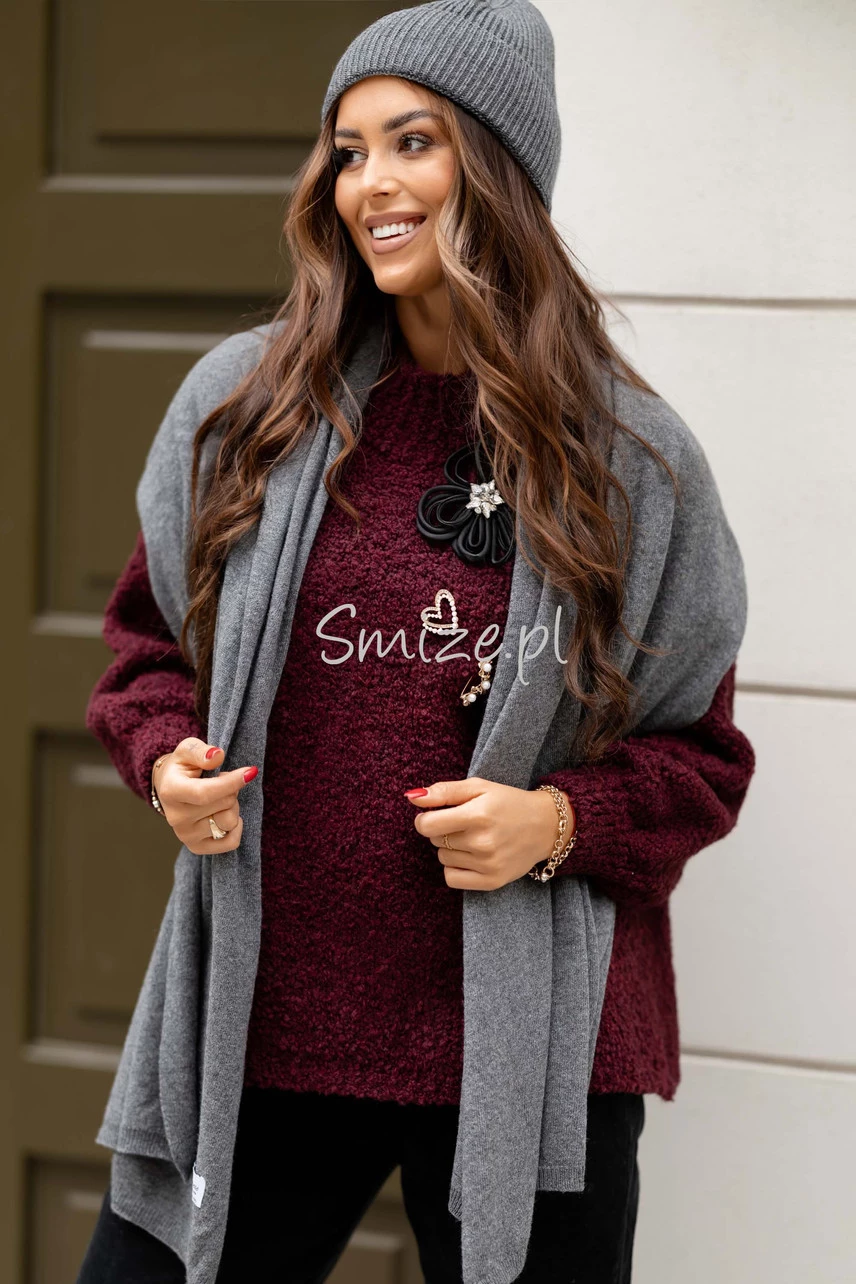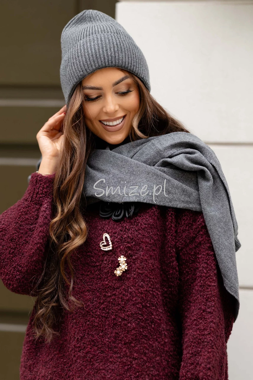 Opinie o Komplet kaszmirowy ciemny szary, szal z czapką CASHMERE