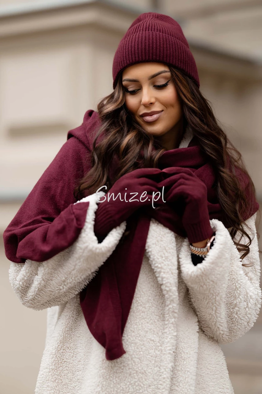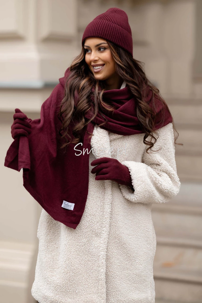 Komplet kaszmirowy z rękawiczkami, CASHMERE, bordowy