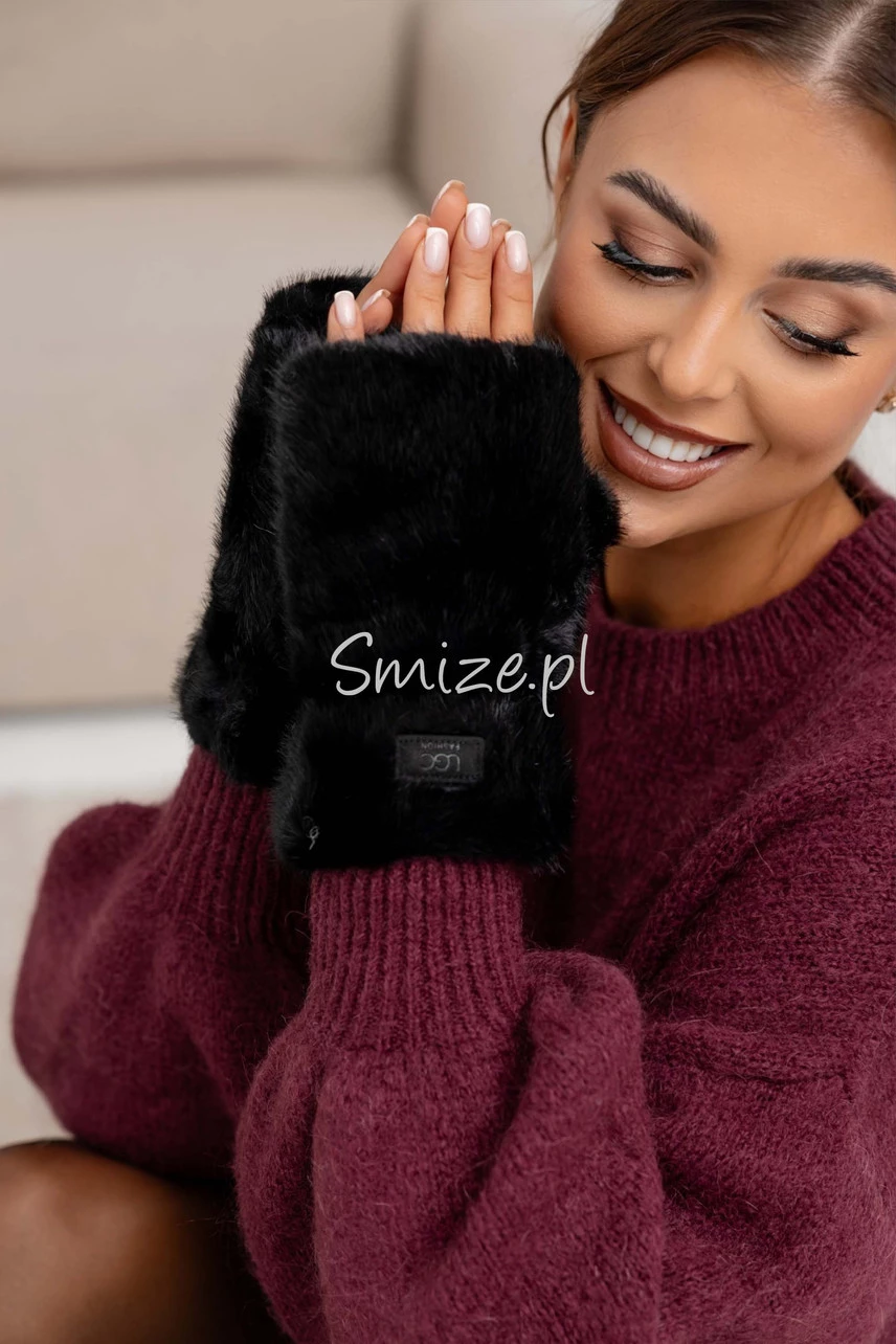 Rękawiczki damskie bez palców / ocieplacze czarne
