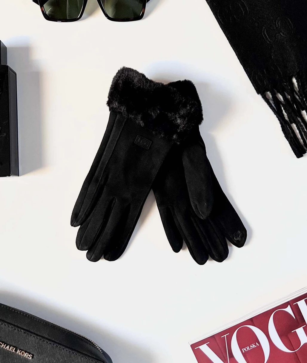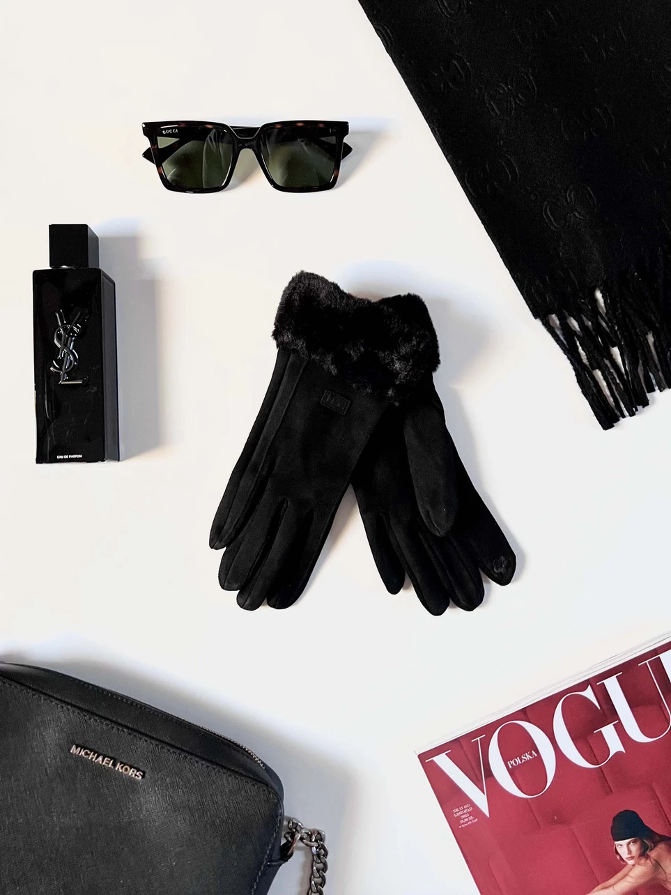 Rękawiczki pięciopalczaste z futerkiem, czarne
