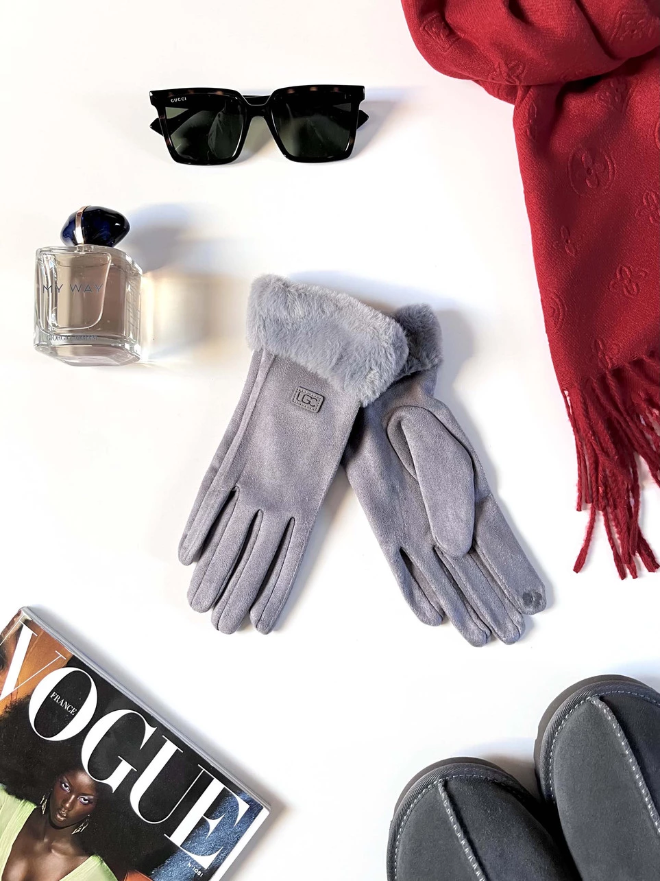 Rękawiczki pięciopalczaste z futerkiem, szare