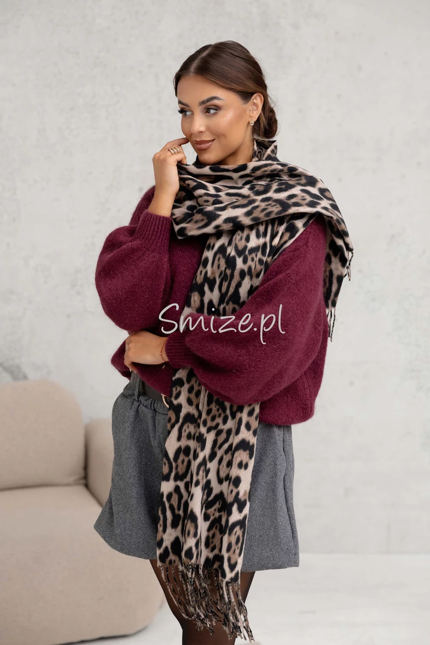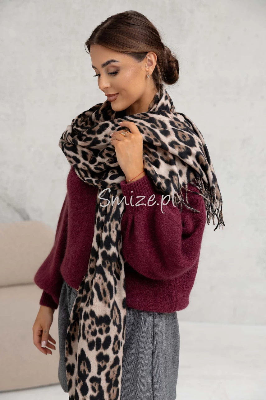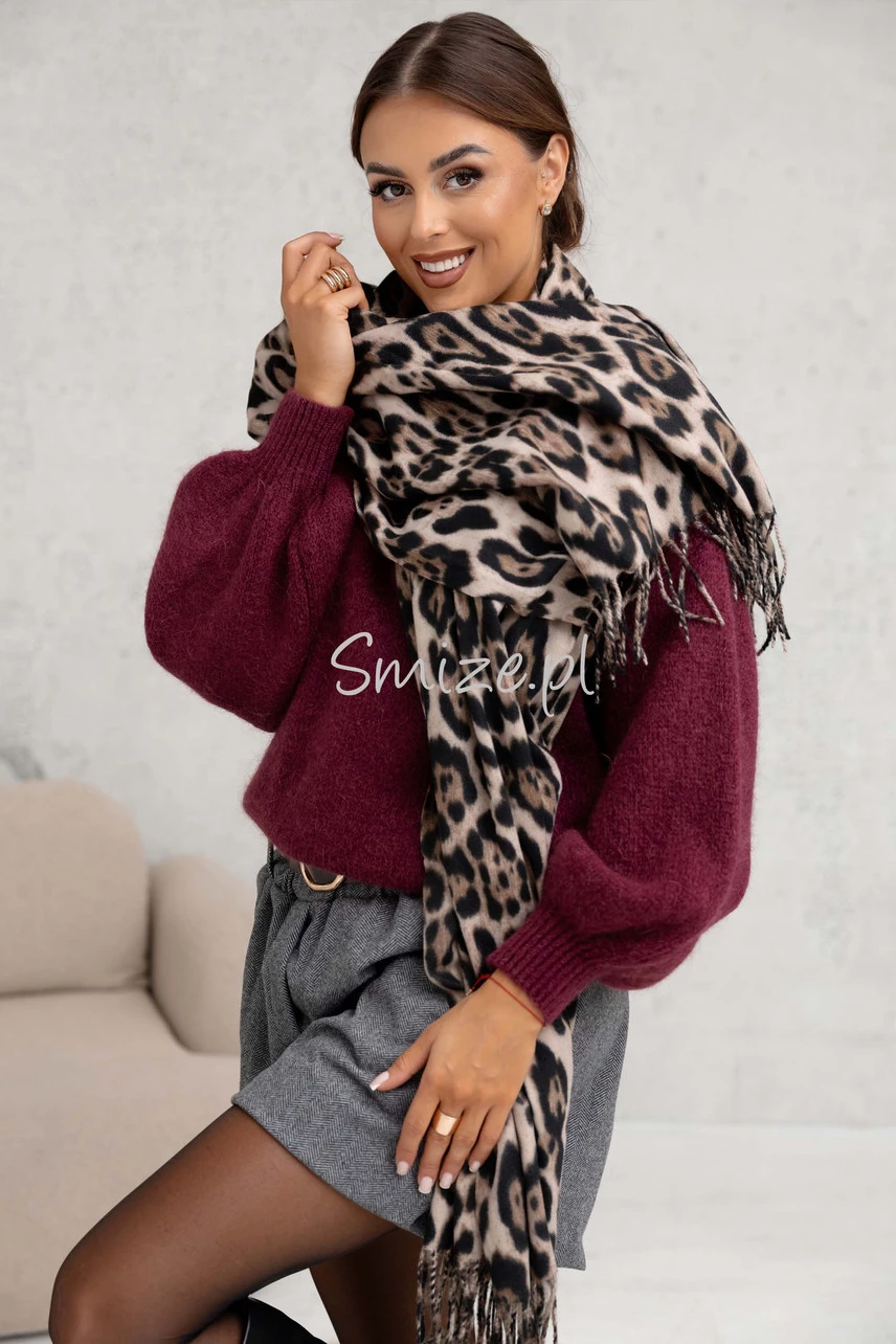 Śliczny i miękki szalik w modny wzór typu panterka.