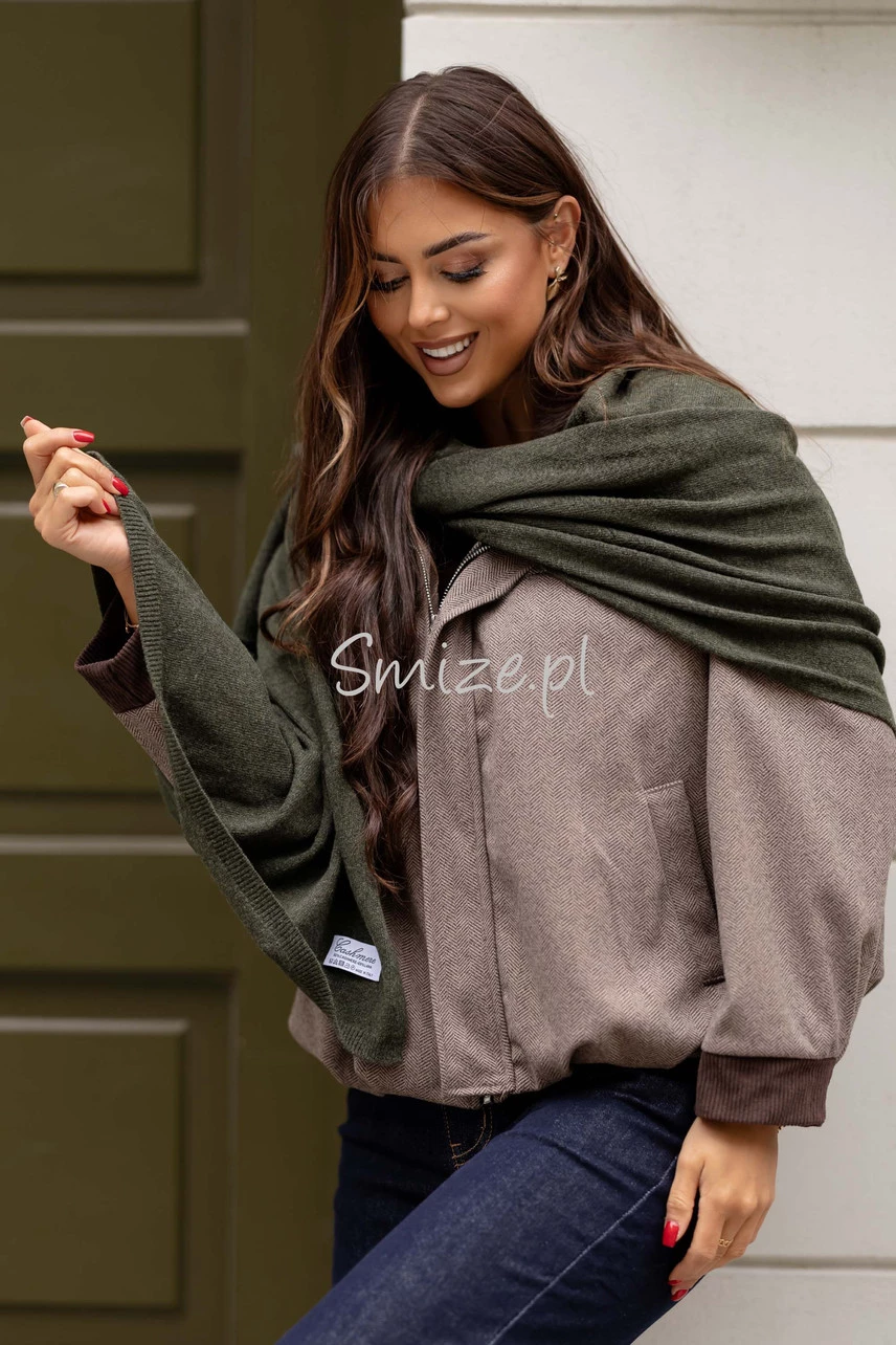 Świetnie pasuje do każdej kurtki, płaszcza, swetra lub ramoneski.