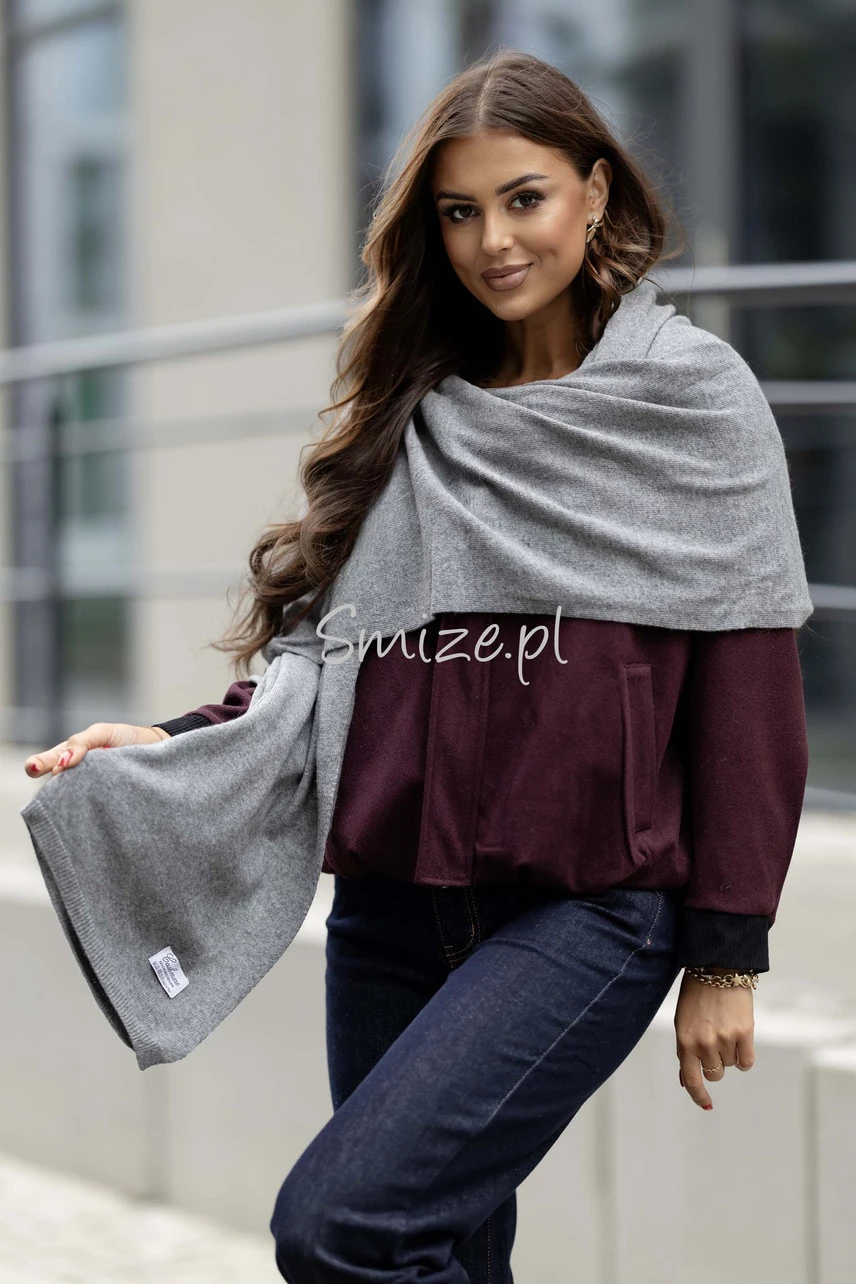 szalik bardzo dobrej jakości, oryginalny głęboki bordowy odcień