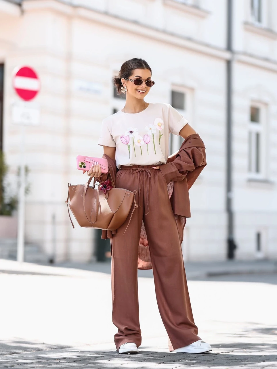 Z przodu wysokiej jakości nadruk, dekolt półokrągły.
