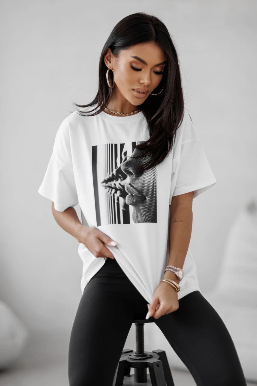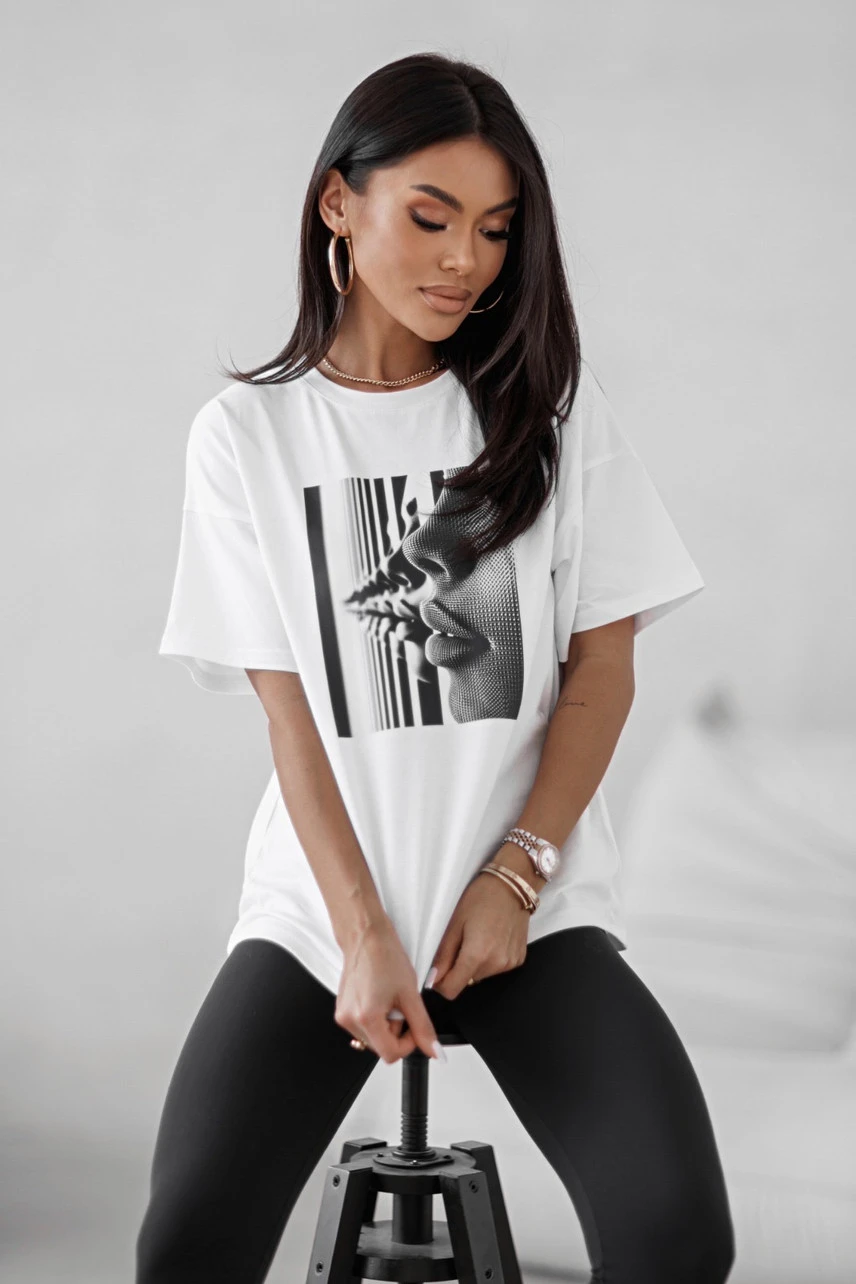 T-shirt z aplikacją 3D to piękny model z wypukłymi ozdobami.