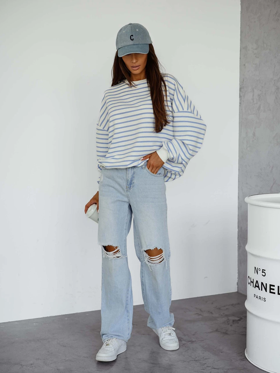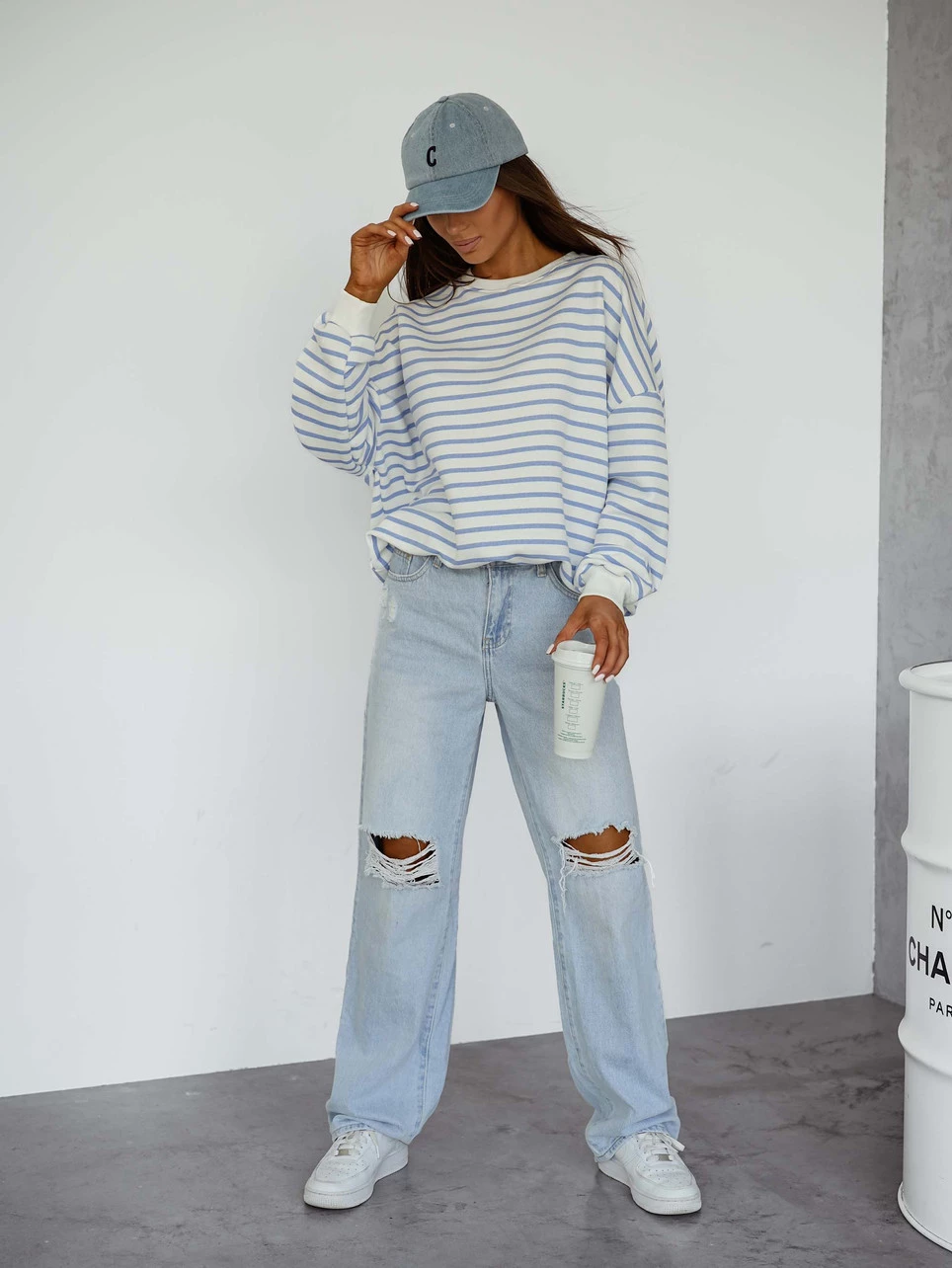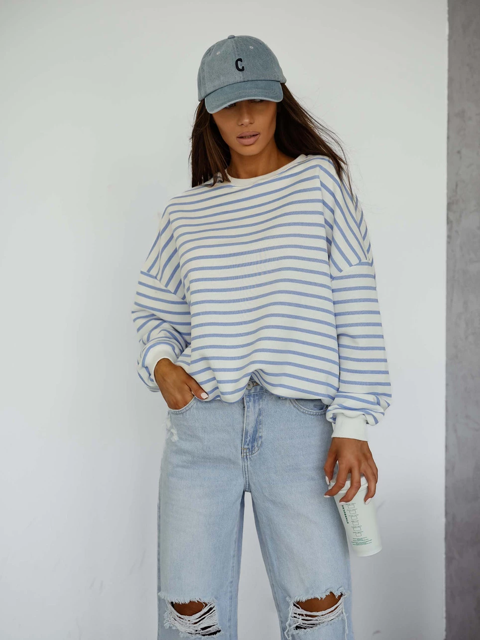 Bluza Stripe z delikatnymi paskami to kwintesencja nowoczesnego luzu i kobiecej wygody. Model oversize łączy wygodny krój z efektownym wzornictwem, dzięki czemu idealnie sprawdza się zarówno na co dzień, jak i w bardziej stylizowanych zestawach.