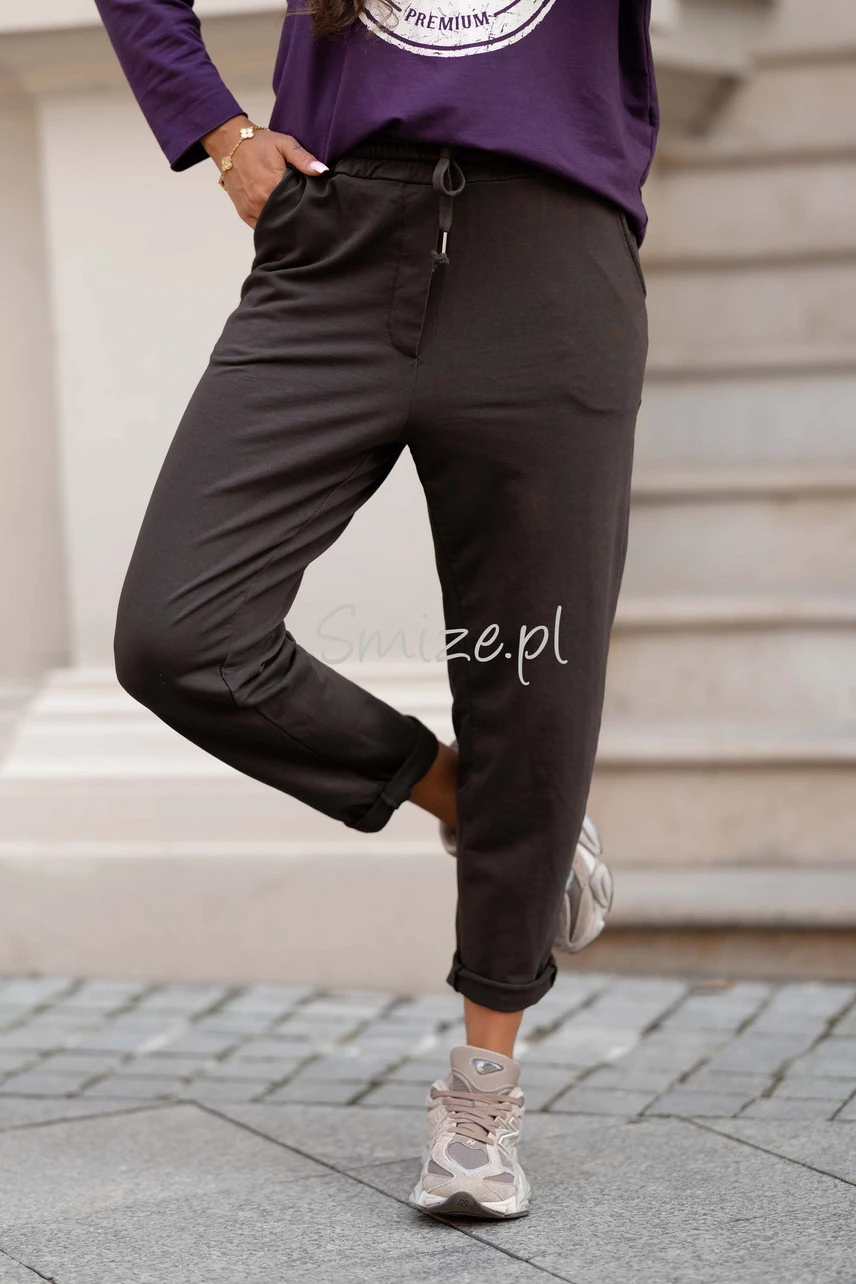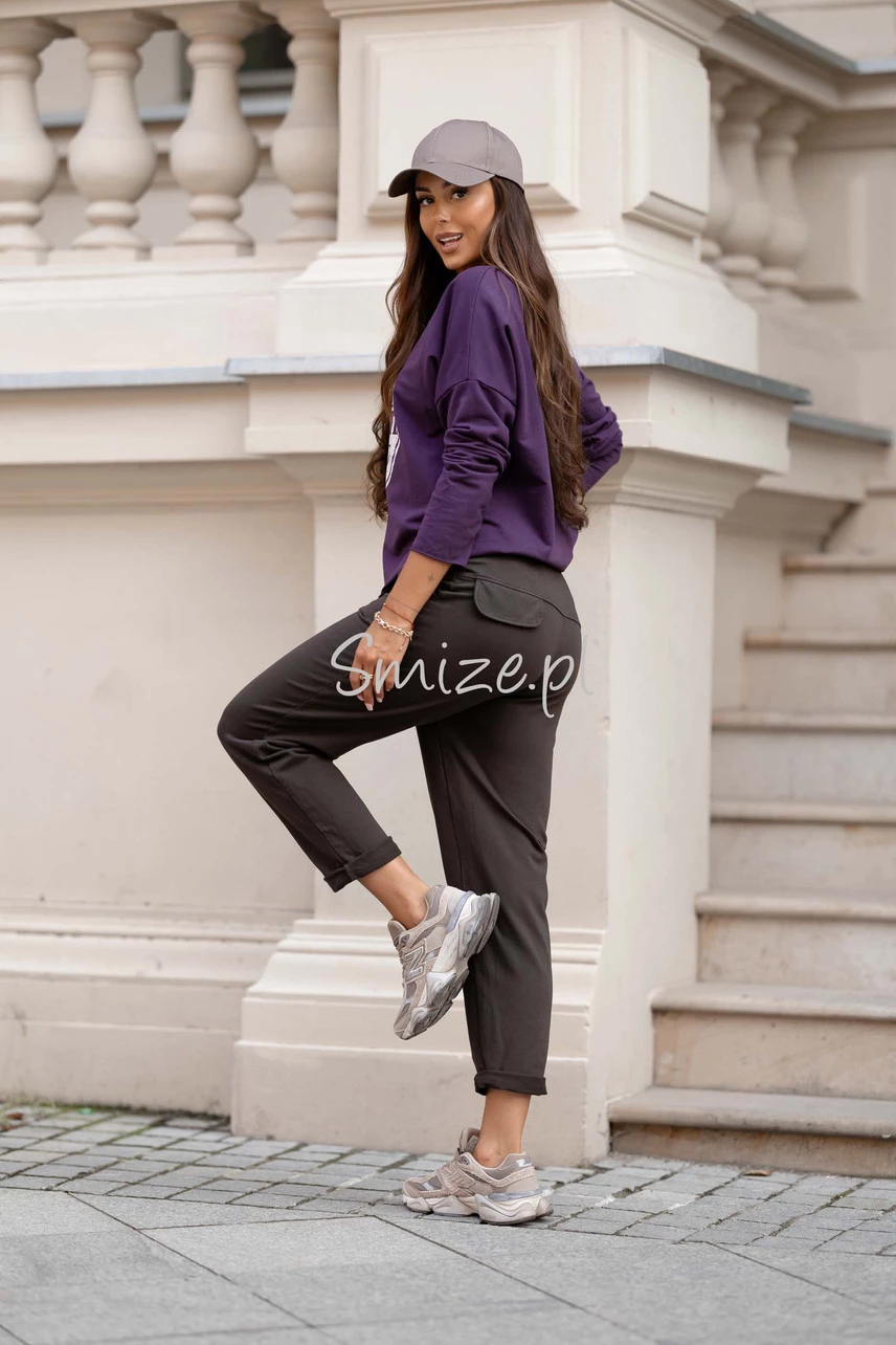 Bawełniane Spodnie dresowy z patką Michelle czekoladowe