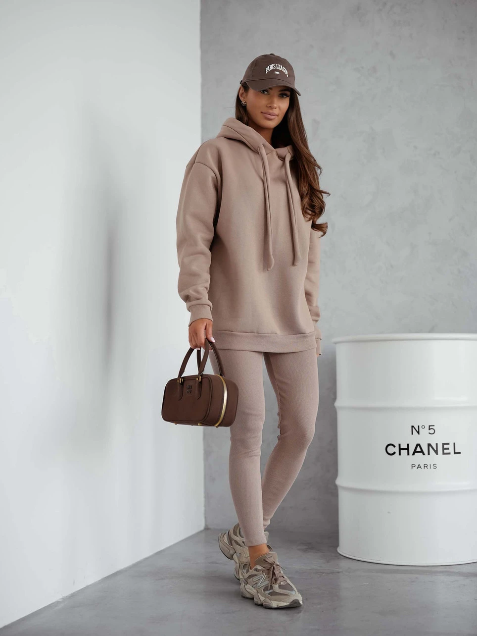 Komplet basic, Bluza ocieplana z legginsami SOFT SET cappucino