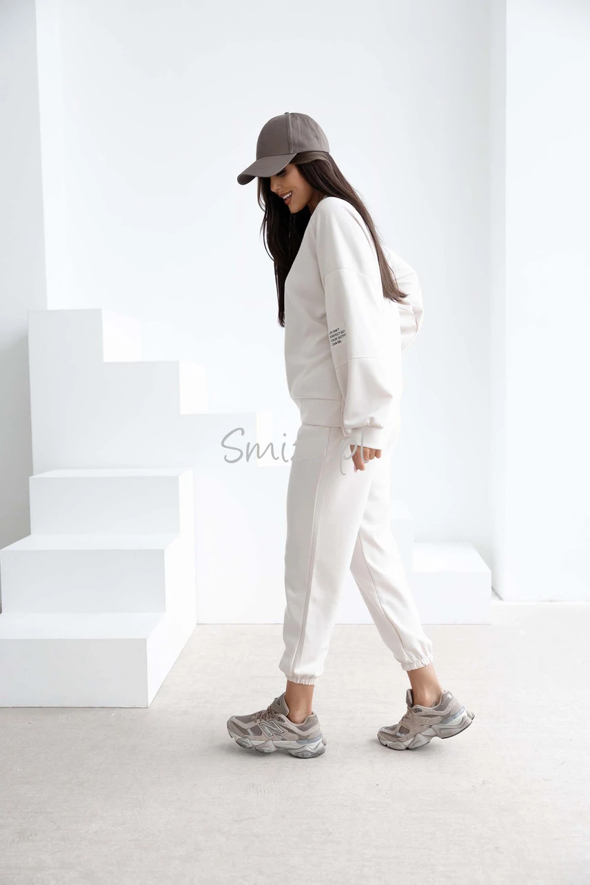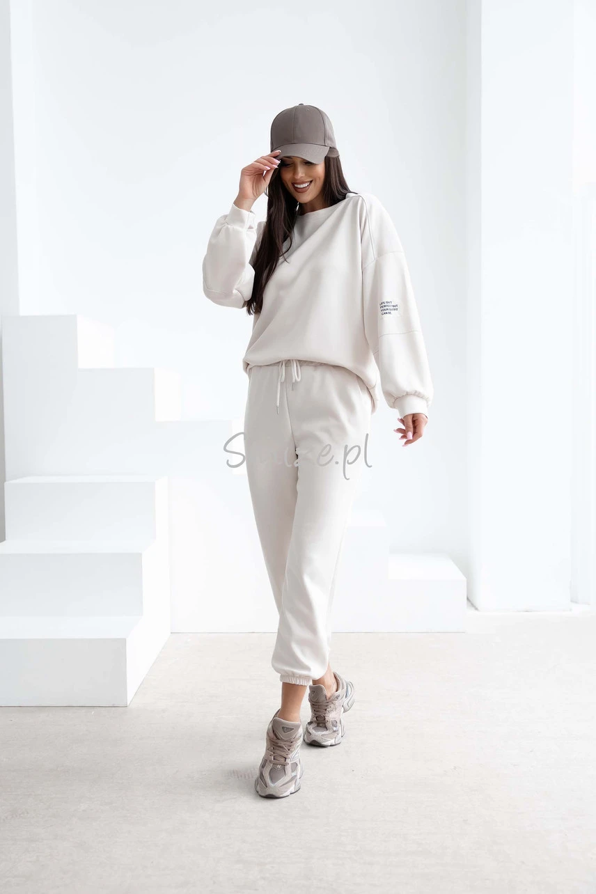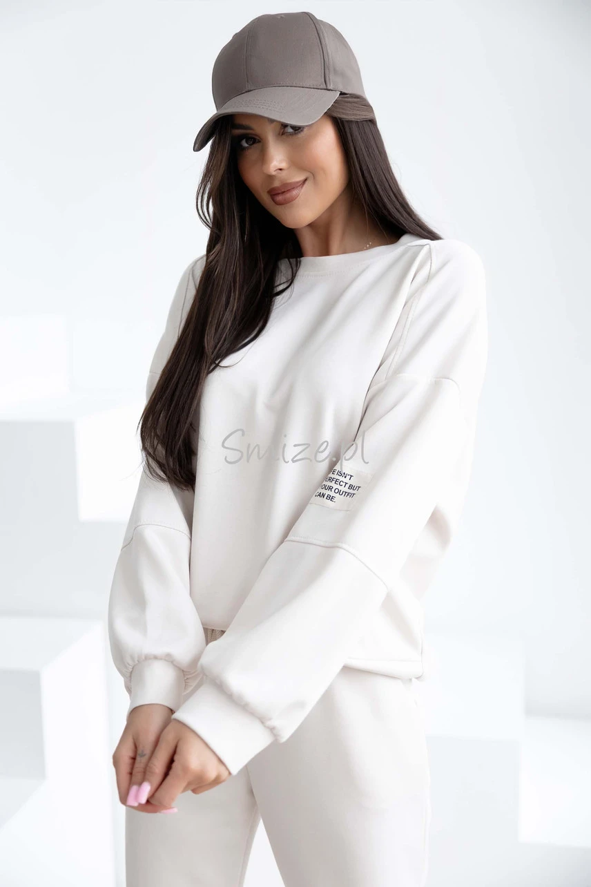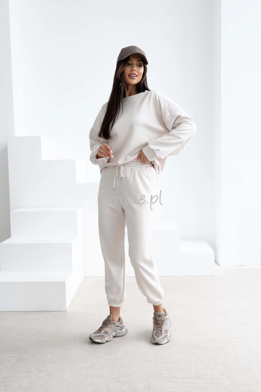 Komplet dresowy masełkowy z naszywką — damski zestaw casual
