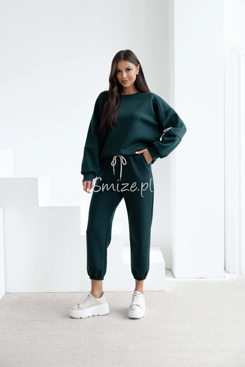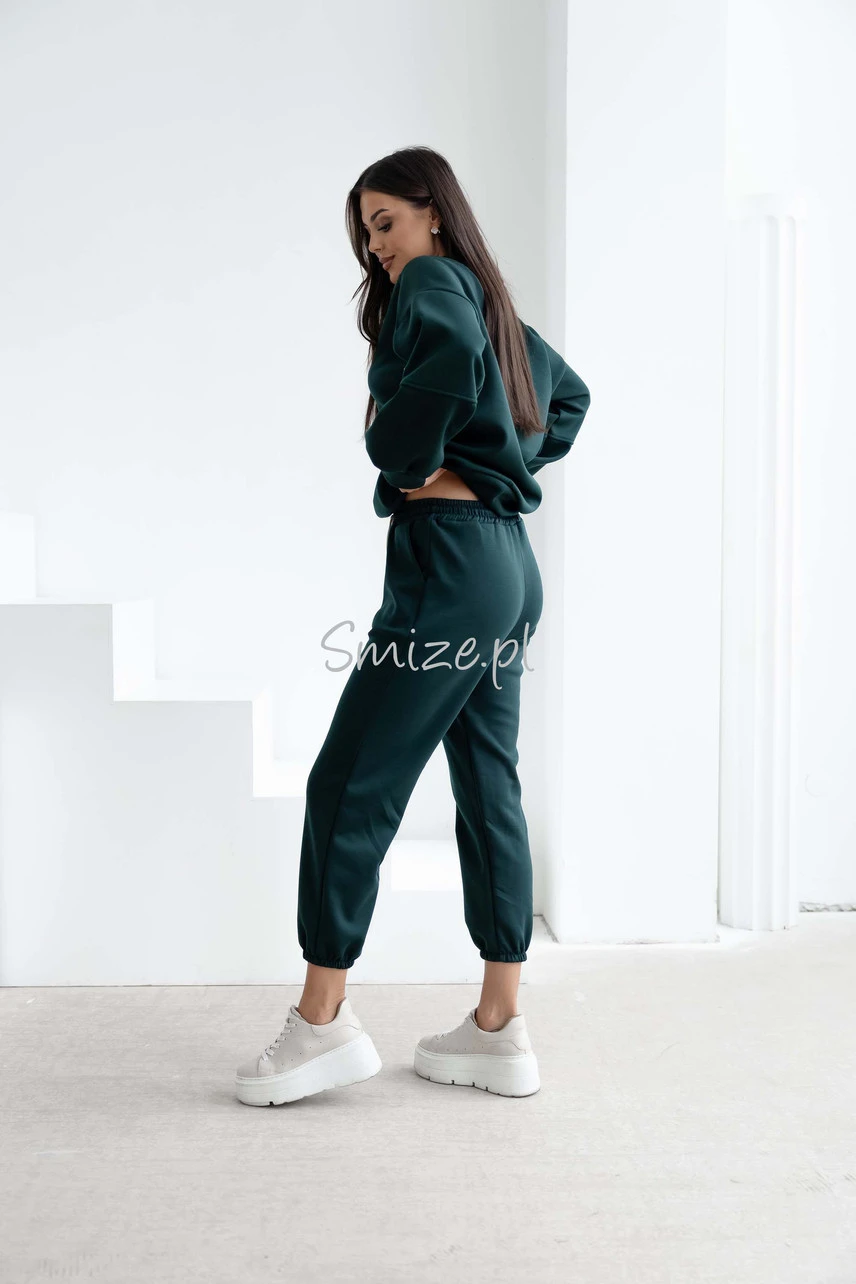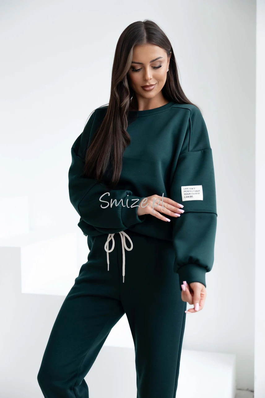 Komplet dresowy masełkowy z naszywką, butelkowa zieleń