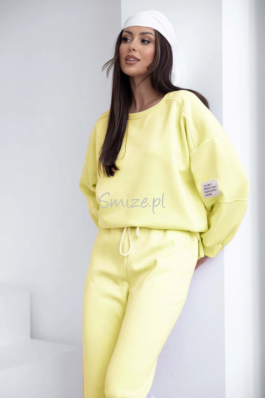 Komplet dresowy masełkowy z naszywką, cytrynowy