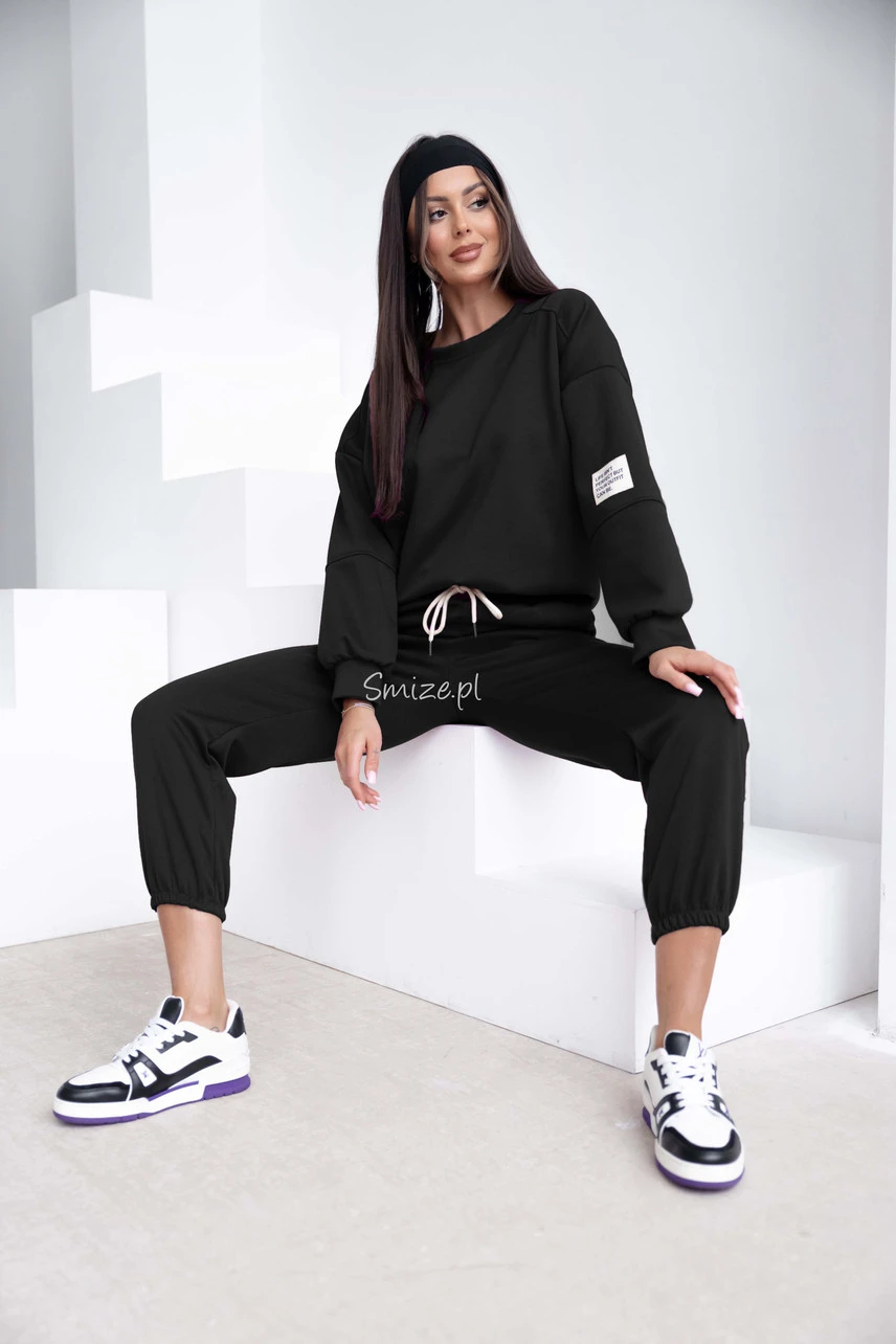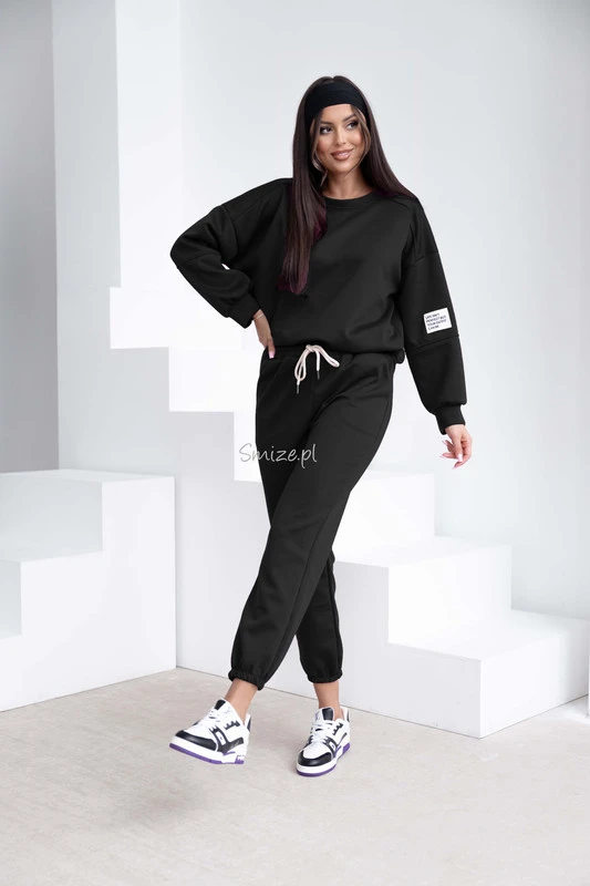 Komplet dresowy masełkowy z naszywką, czarny
