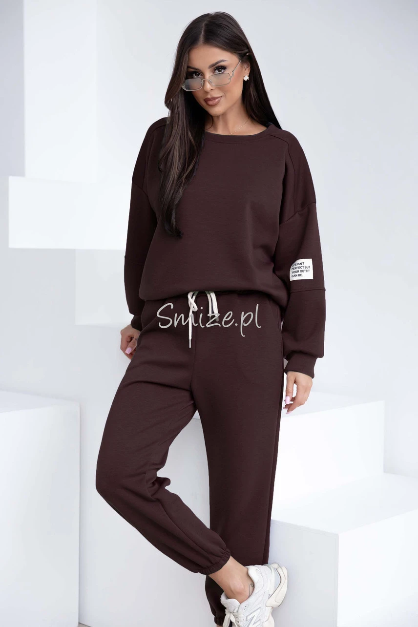 Komplet dresowy masełkowy z naszywką, czekoladowy