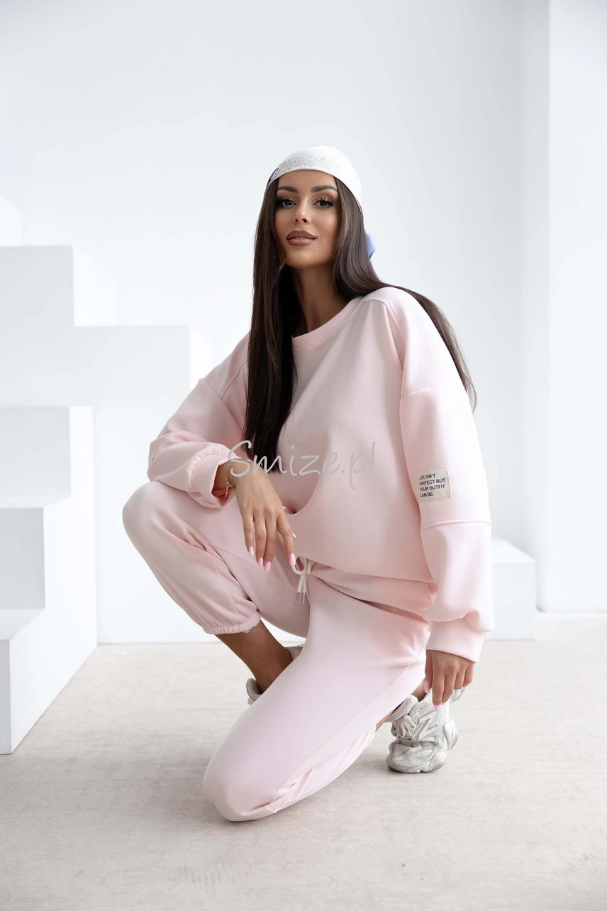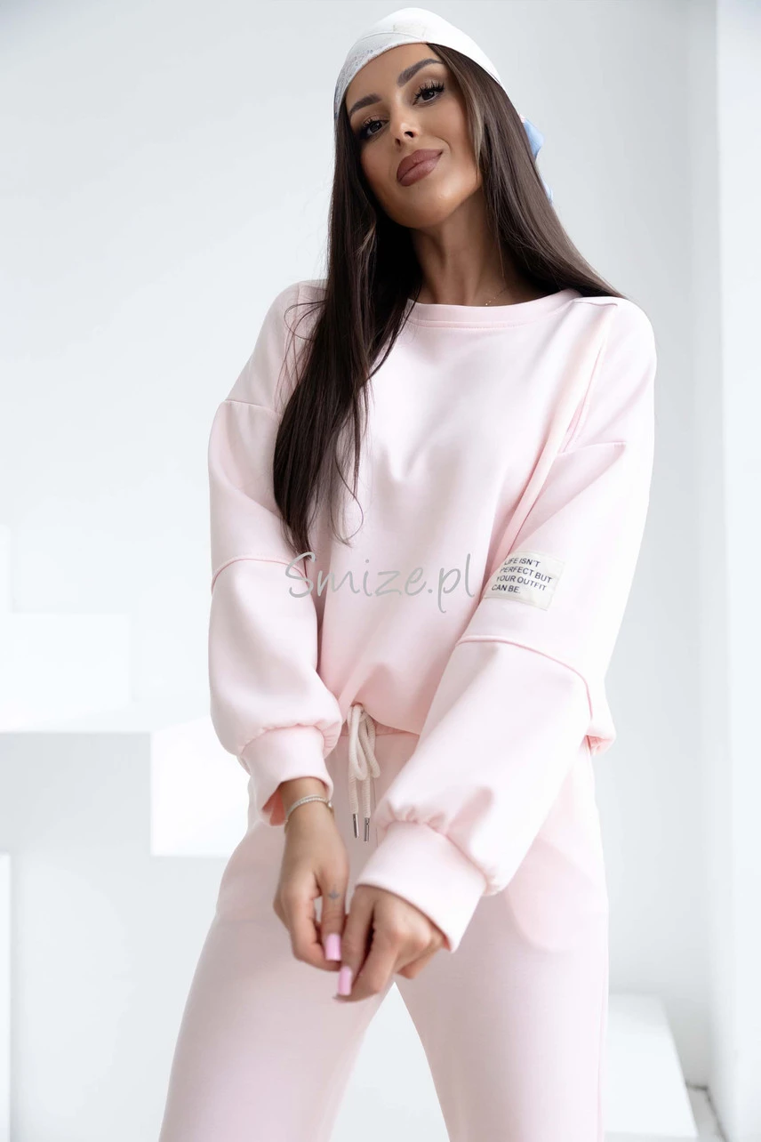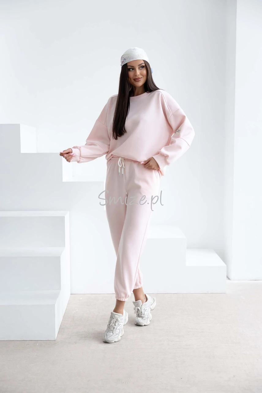 Komplet dresowy masełkowy z naszywką, jasny róż