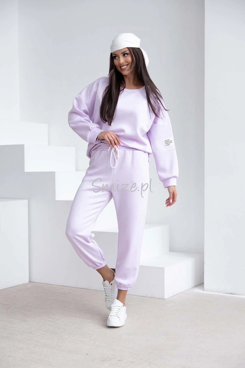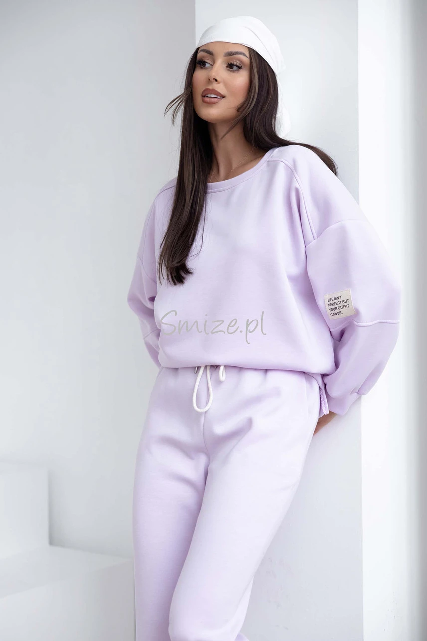 Komplet dostępny w rozmiarze One Size, z luźnym krojem, który dopasowuje się do różnych kształtów i typów sylwetki. Dzięki obniżonej linii ramion bluza świetnie wygląda bez względu na wzrost czy figurę.
