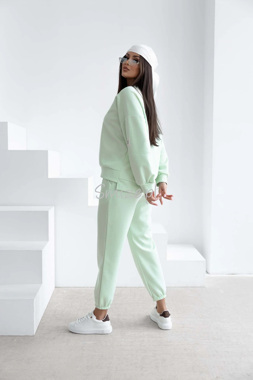 Ten komplet dresowy damski z naszywką to kwintesencja wygody i kobiecego stylu. Uszyty z miękkiego, przyjemnego w dotyku materiału typu masełko, zapewnia maksymalny komfort — czy to podczas relaksu po pracy, czy podczas weekendowego spaceru. Dzięki luźnemu krojowi i elastycznym ściągaczom w pasie oraz nogawkach spodnie świetnie dopasowują się do sylwetki, podkreślając to, co najpiękniejsze.