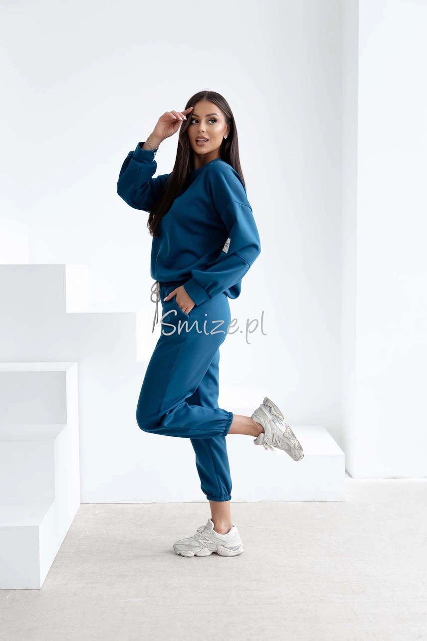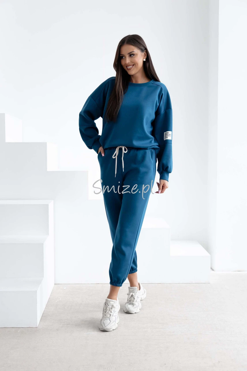 Ten komplet dresowy damski z naszywką to kwintesencja wygody i kobiecego stylu. Uszyty z miękkiego, przyjemnego w dotyku materiału typu masełko, zapewnia maksymalny komfort — czy to podczas relaksu po pracy, czy podczas weekendowego spaceru. Dzięki luźnemu krojowi i elastycznym ściągaczom w pasie oraz nogawkach spodnie świetnie dopasowują się do sylwetki, podkreślając to, co najpiękniejsze.