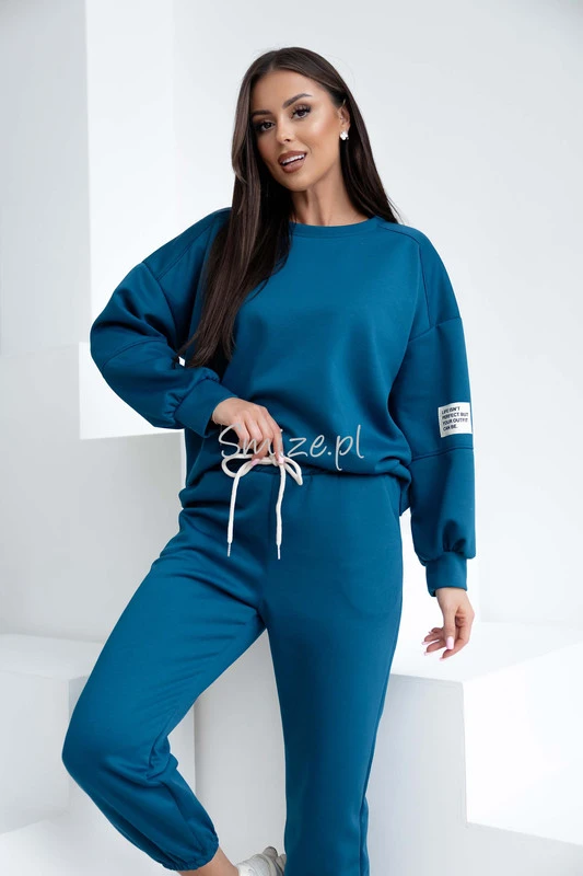 Komplet dresowy masełkowy z naszywką — damski zestaw casual