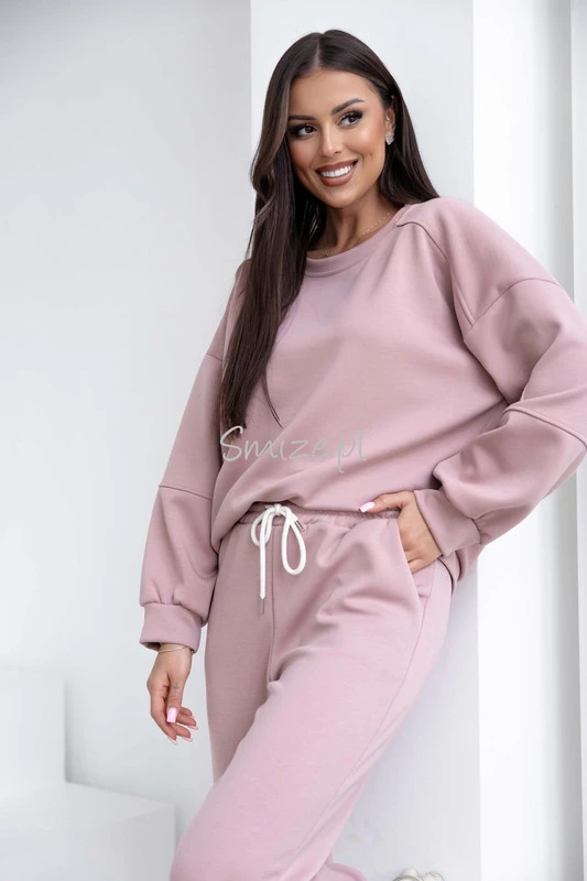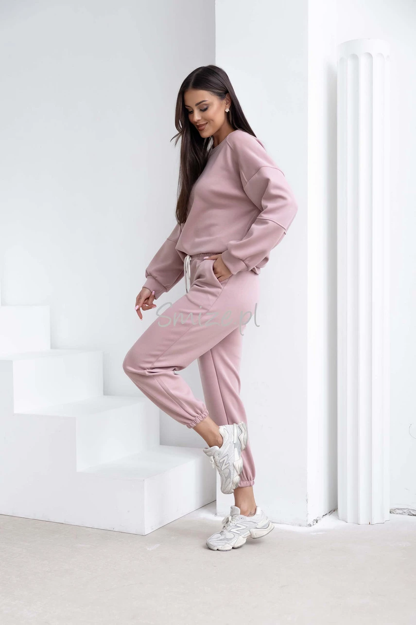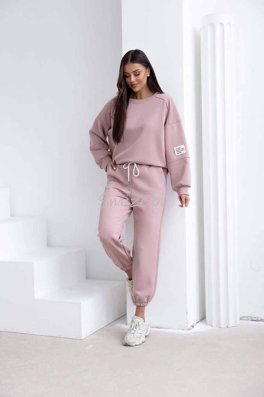 Komplet dresowy masełkowy z naszywką, pudrowy róż