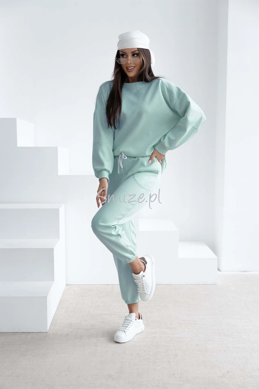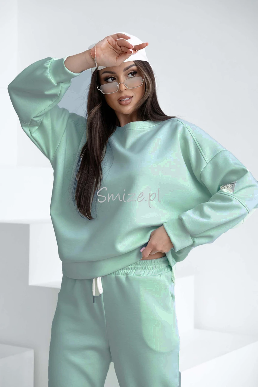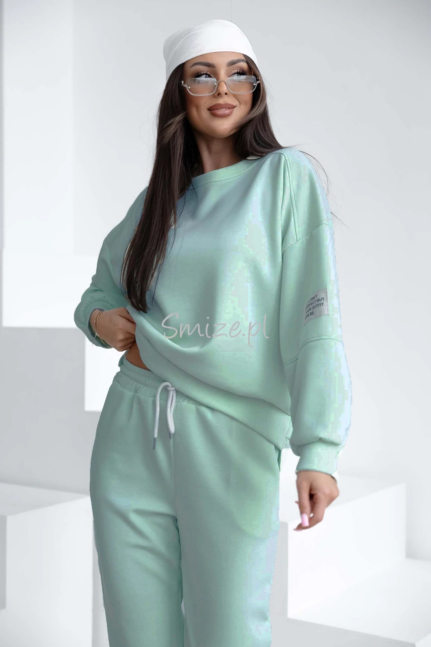 Komplet dresowy masełkowy z naszywką, szałwia