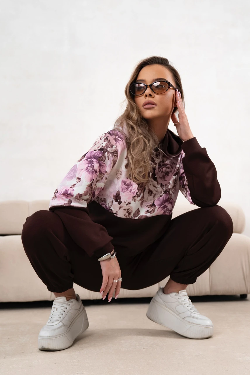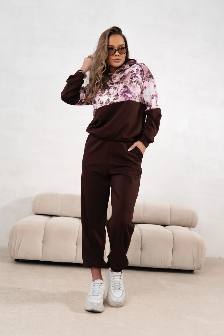 Komplet dresowy z wiskozy Flowers czekoladowy