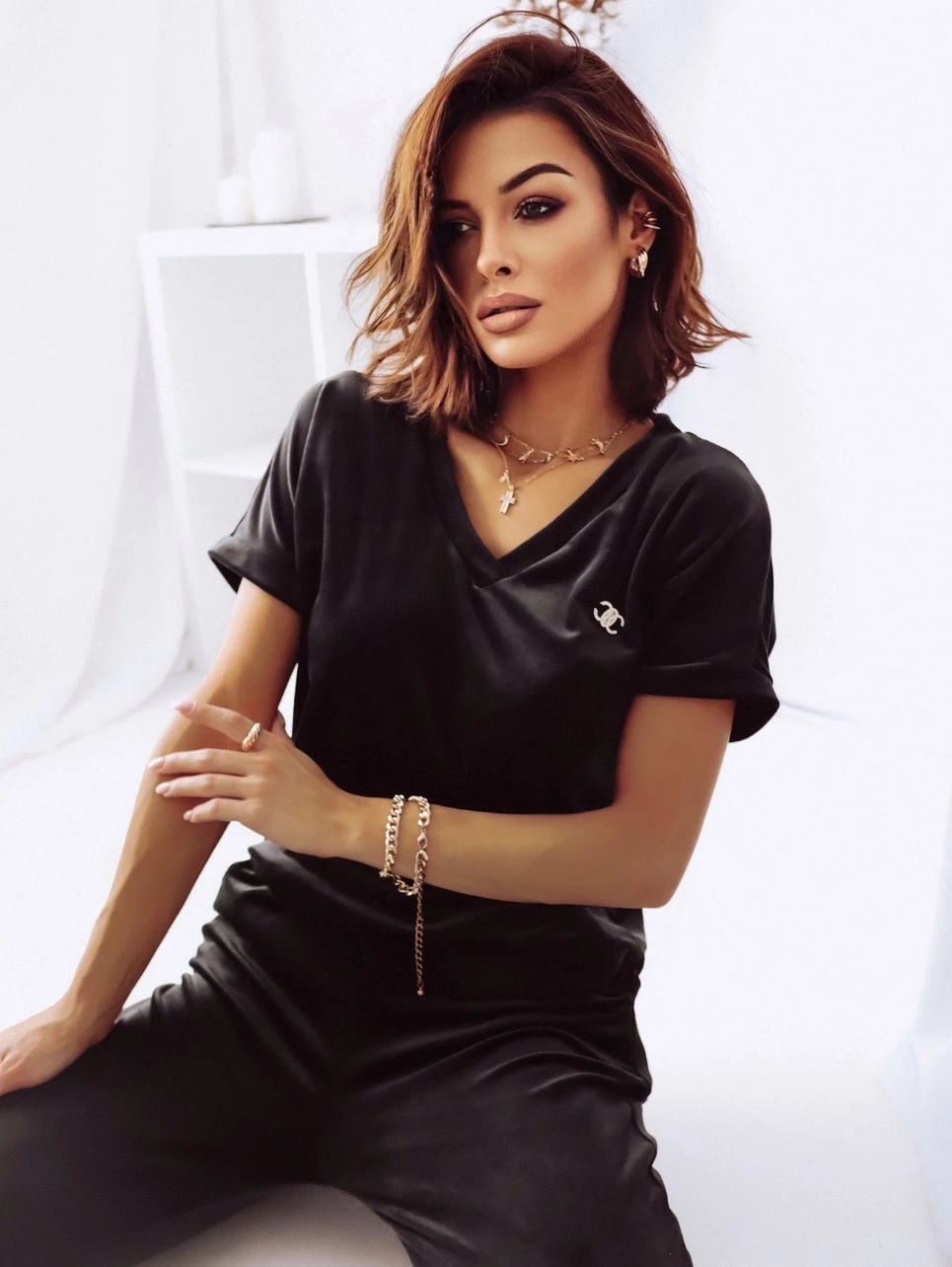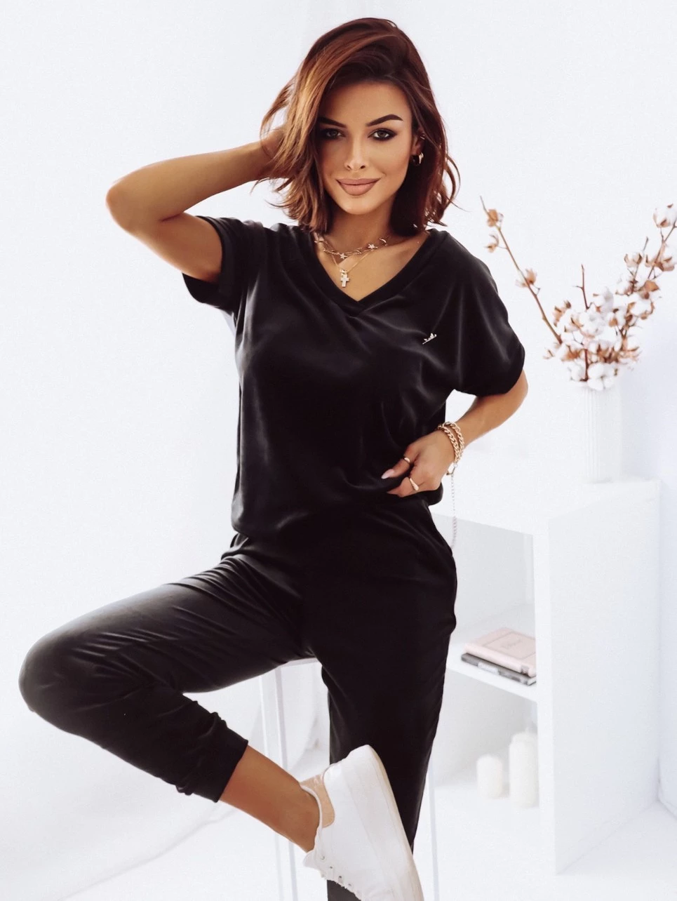 Welurowy komplet dresowy V-neck