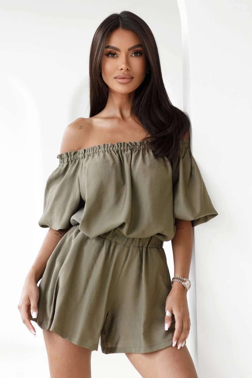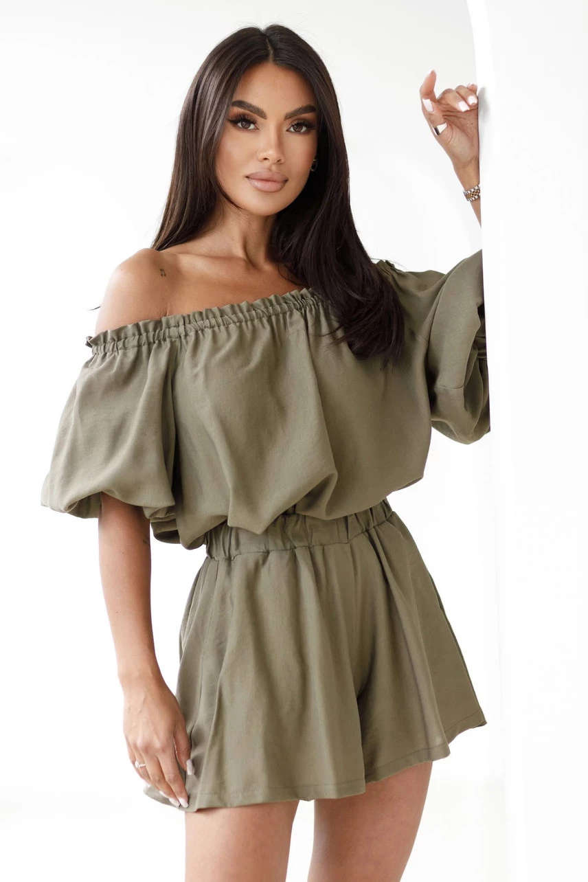 Komplet składa się z bluzki i krótkich spodenek.