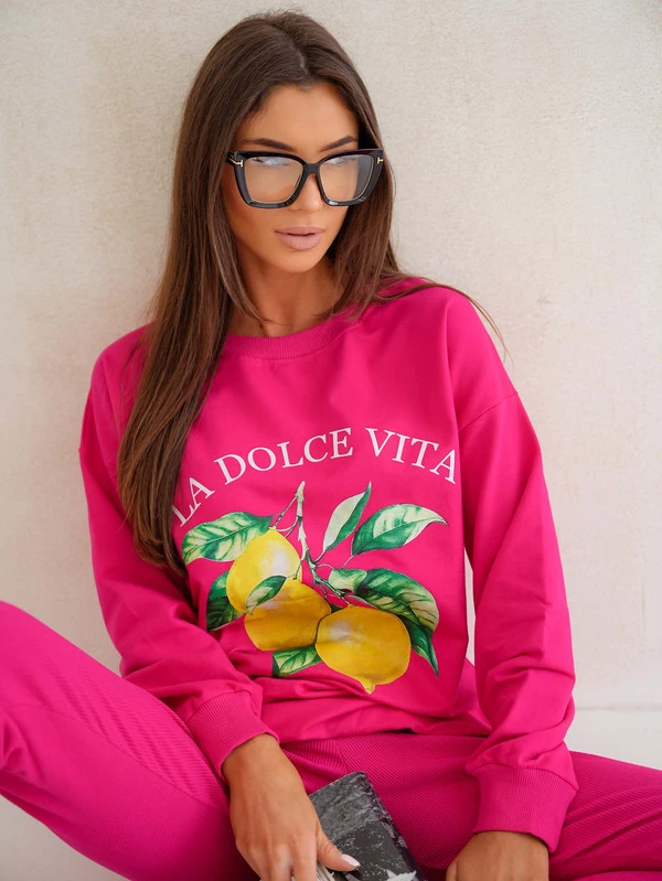 Wygodny długa bluza oversize z nadrukiem LA DOLCE VITA "CYTRYNKI".