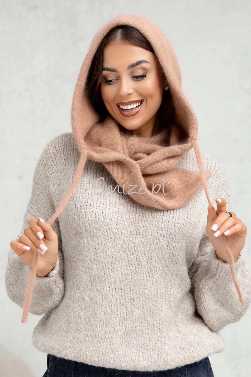 Kominokaptur, balaklawa damska z angory Smize, camel