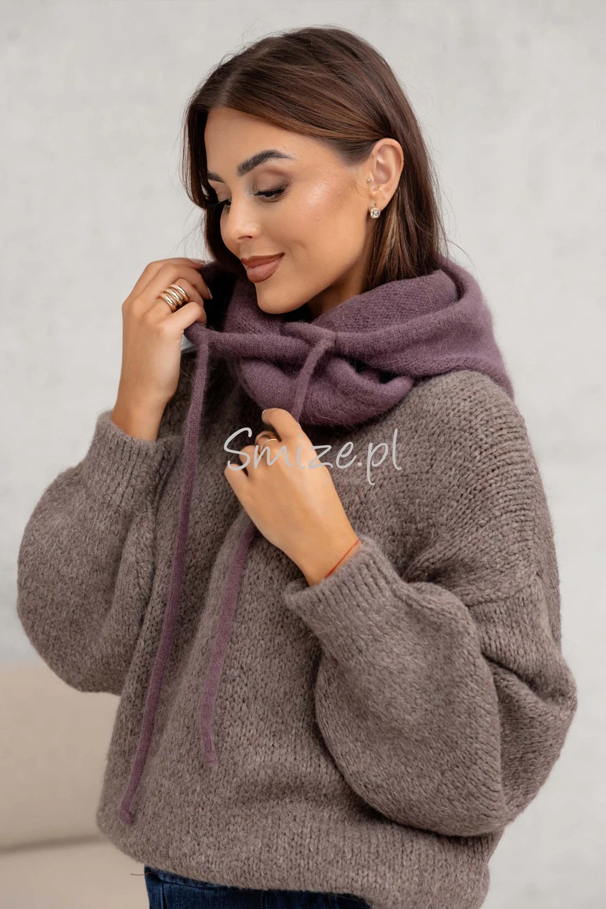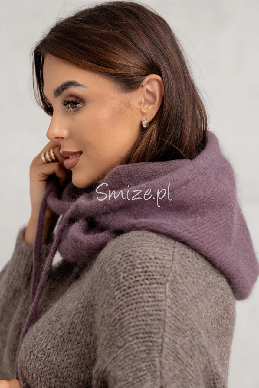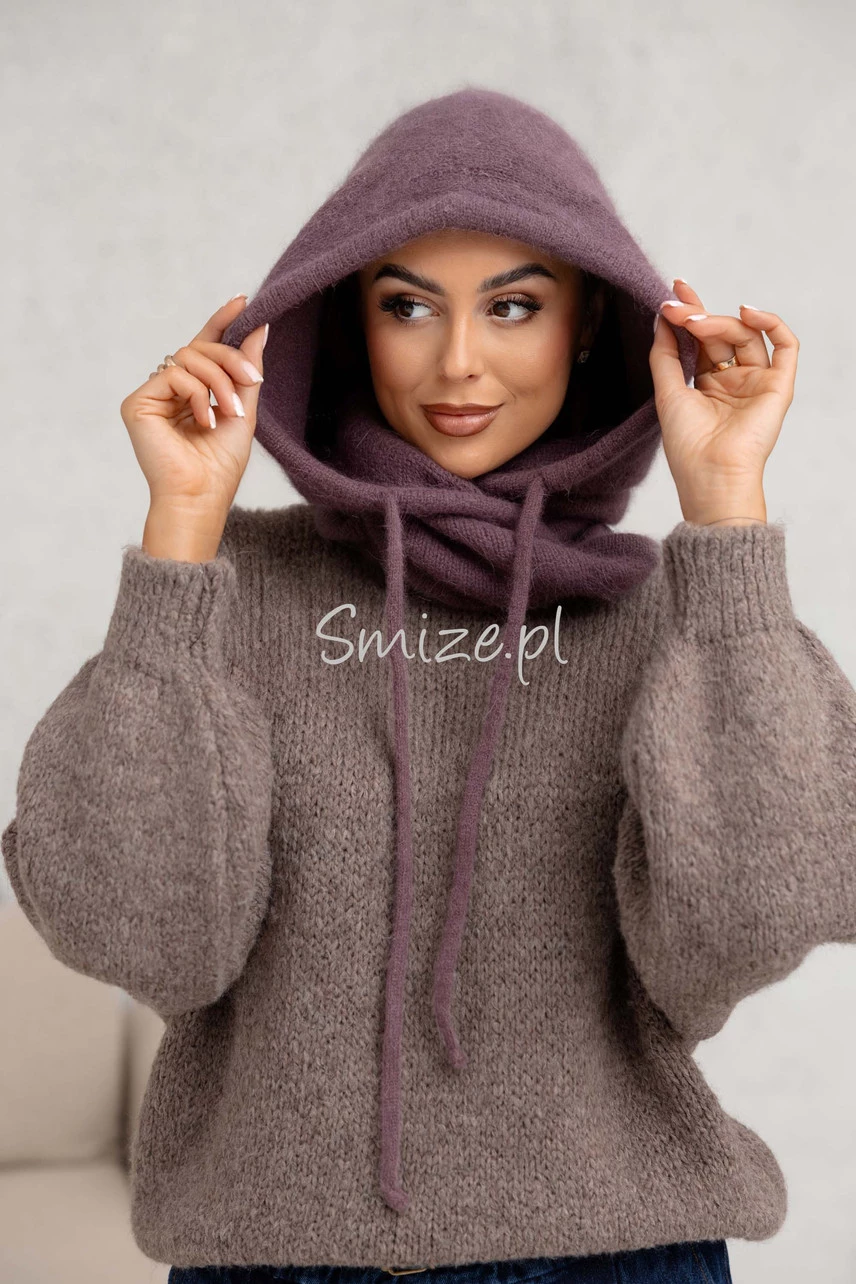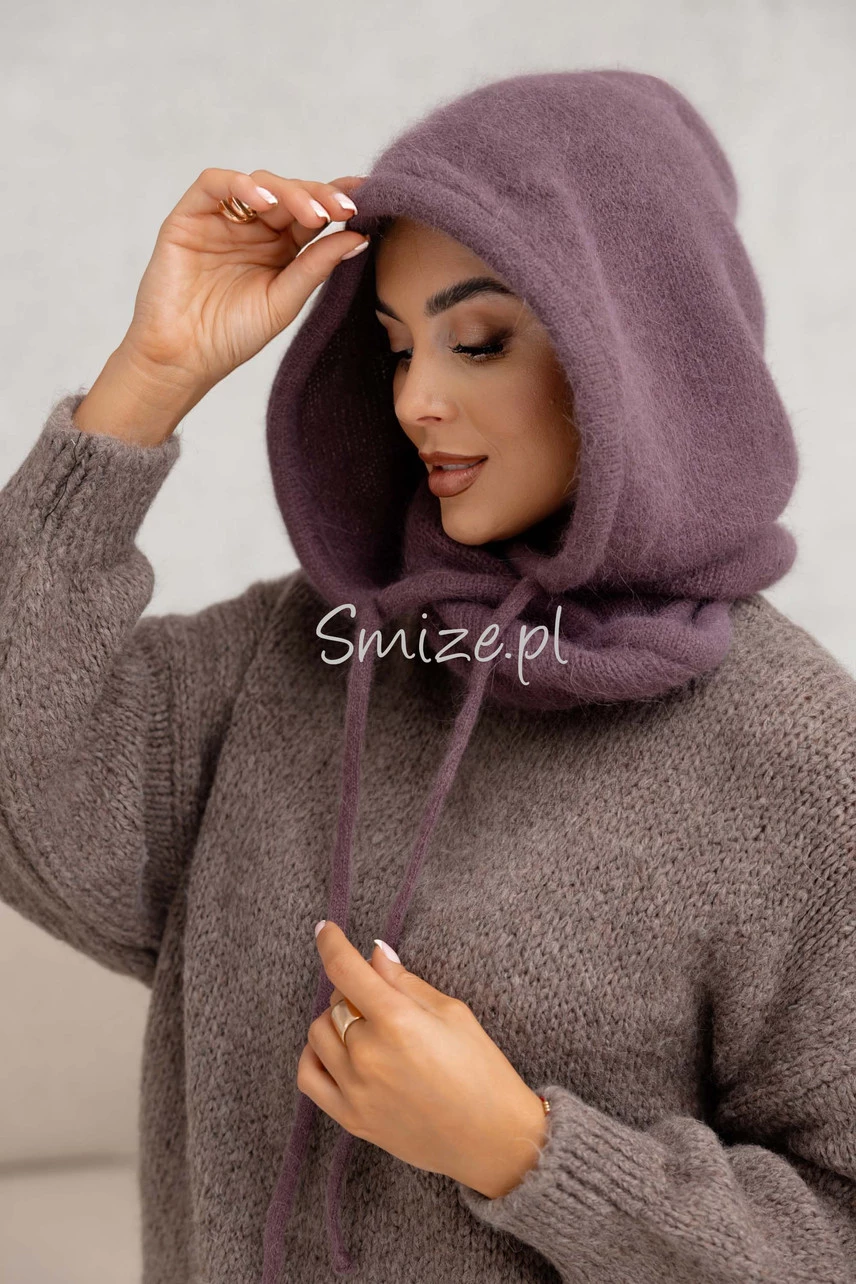 Kominokaptur, balaklawa damska z angory Smize, śliwka w czekoladzie