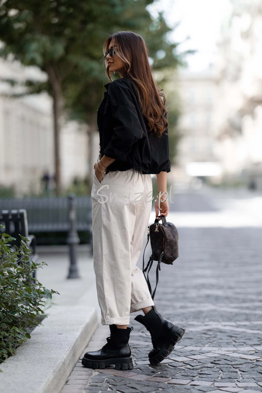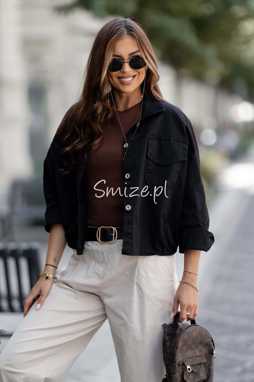 Kurtka wykonana jest z lekkiego, przyjemnego w dotyku materiału — doskonała na wiosenne i letnie wieczory, kiedy nie chcesz rezygnować z komfortu.