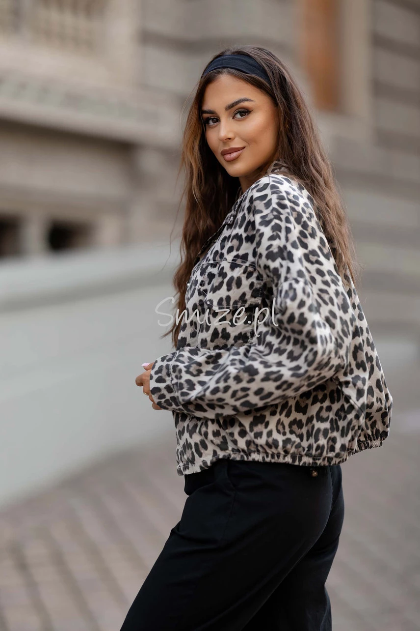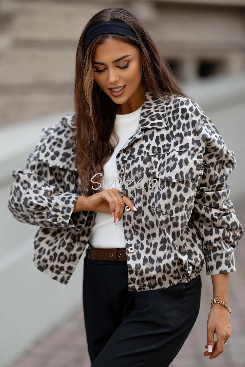 Kurtka damska bomberka z gumką NEST w panterkę