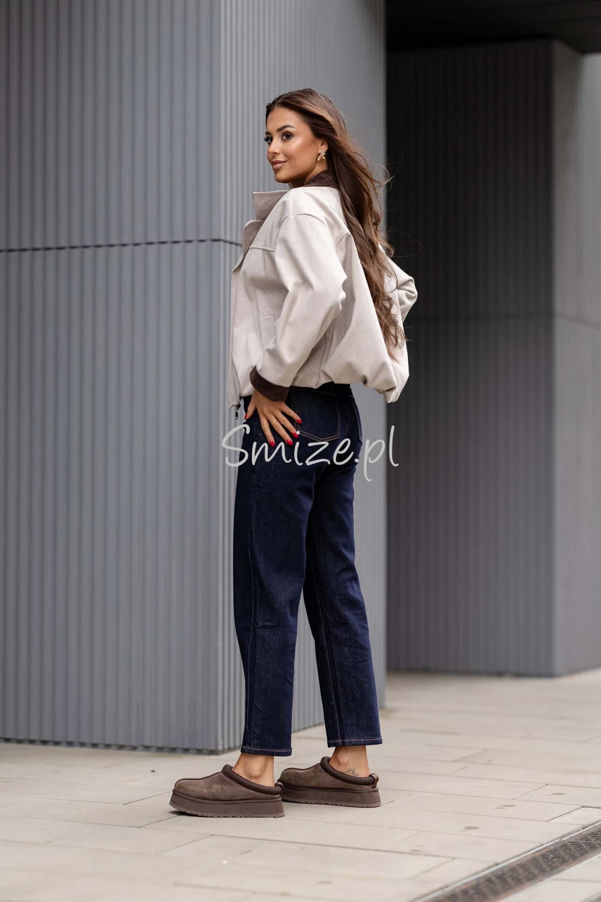 Najmodniejsza w tym sezonie kurtka ze sztruksowym kołnierzem w jodełkę.