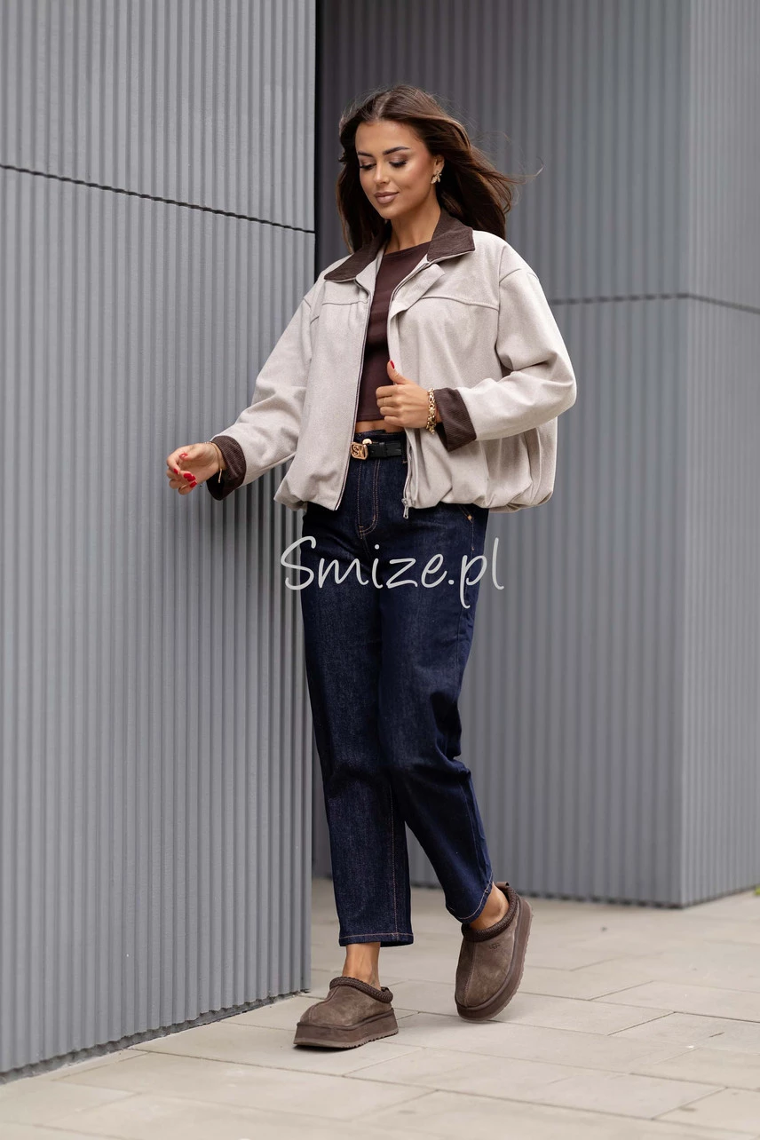 Kurtka damska w jodełkę ze sztruksowym kołnierzem, beżowa