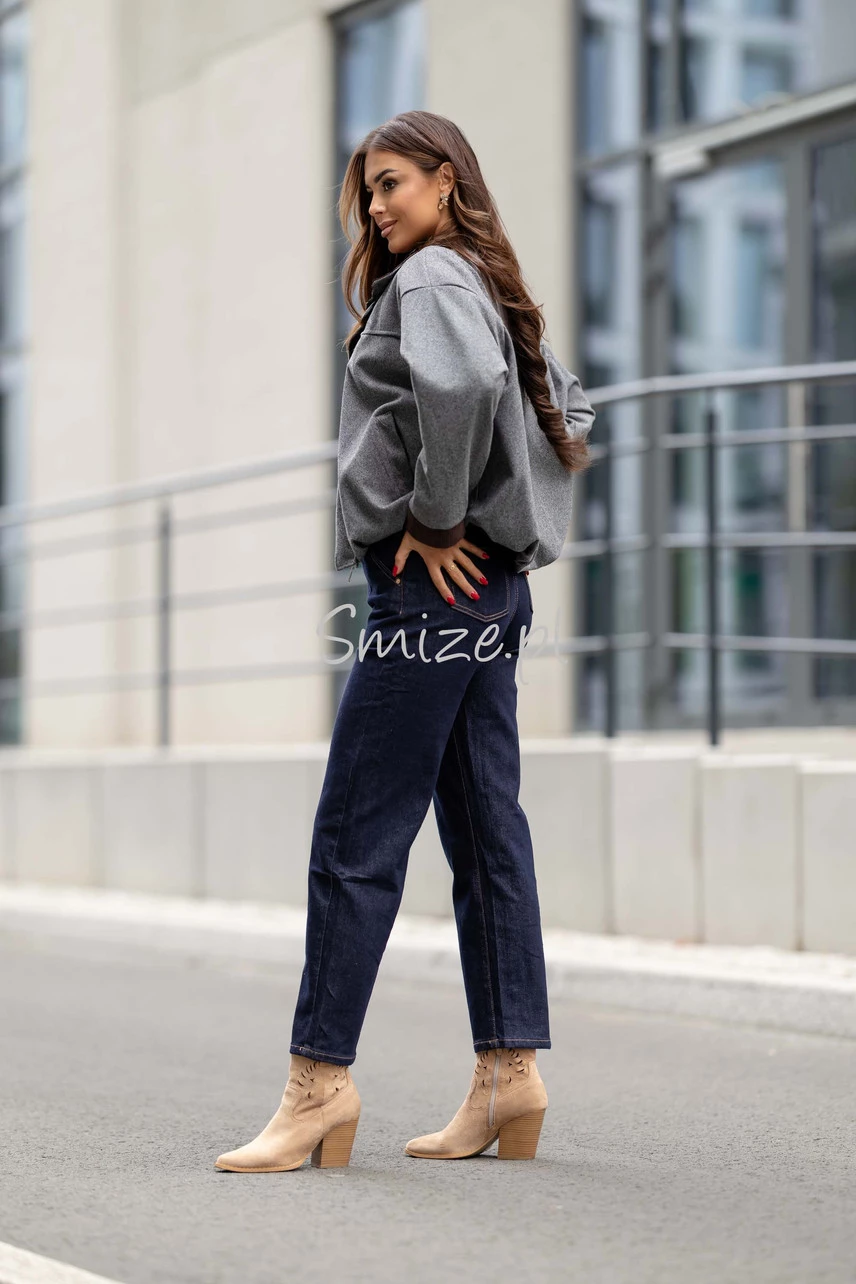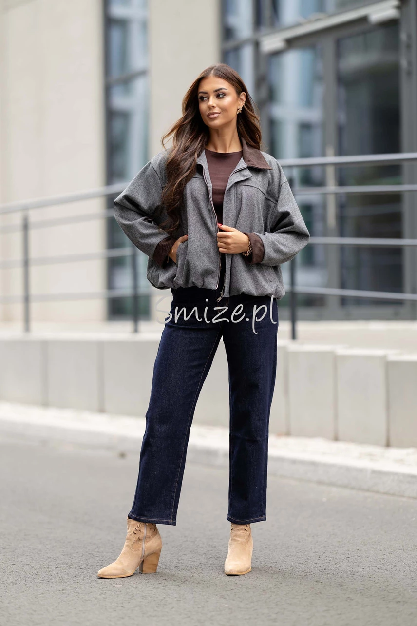 Kurtka damska w jodełkę ze sztruksowym kołnierzem, szara