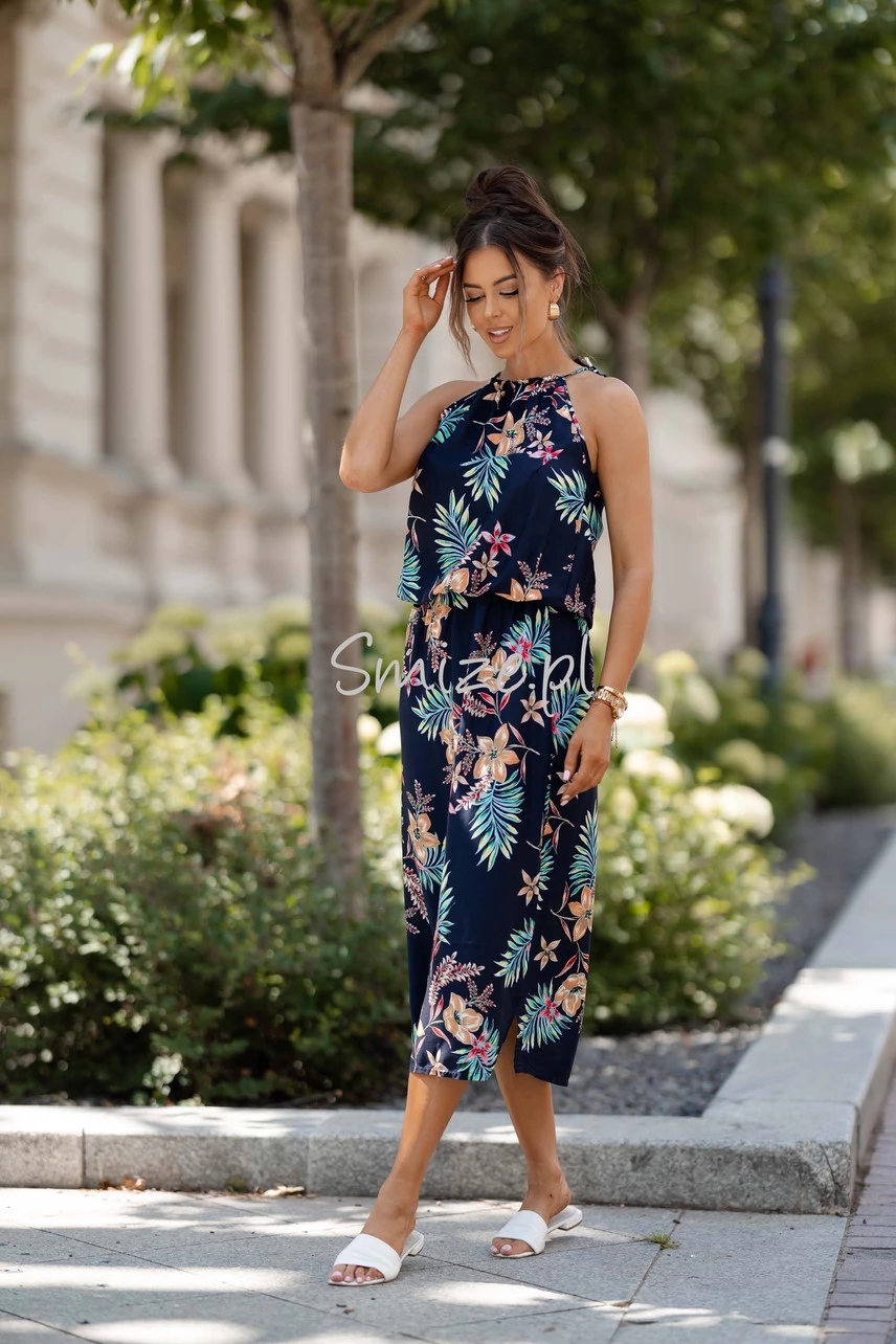 Sukienka z wiskozy na ramiączkach SUNSET Tropical