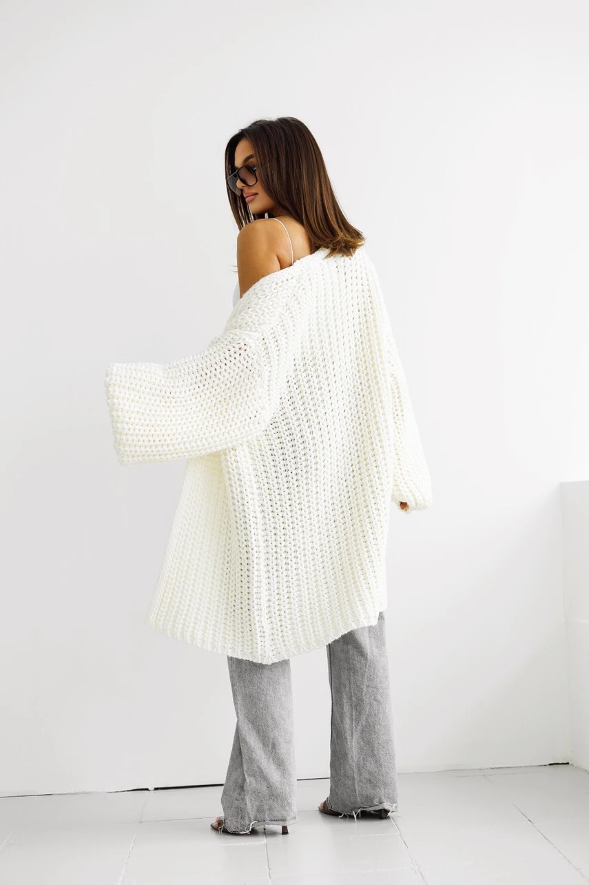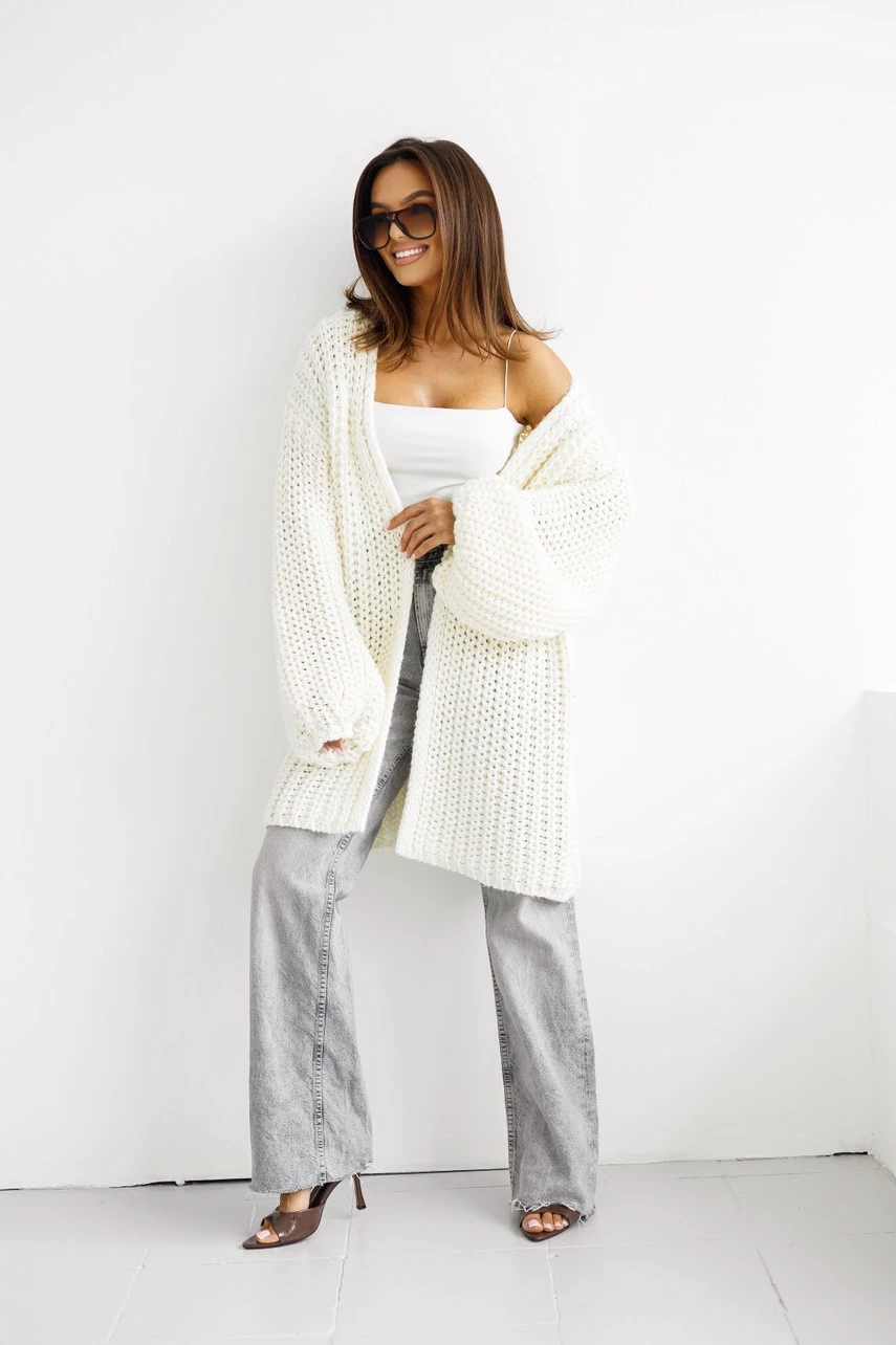 Kardigan LORI, to model wykonany z przędzy z dodatkiem wełny.