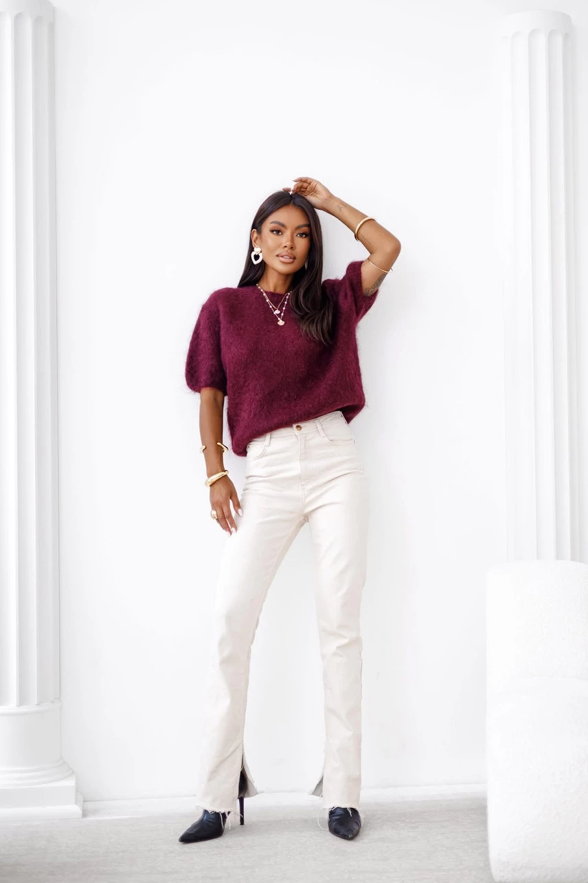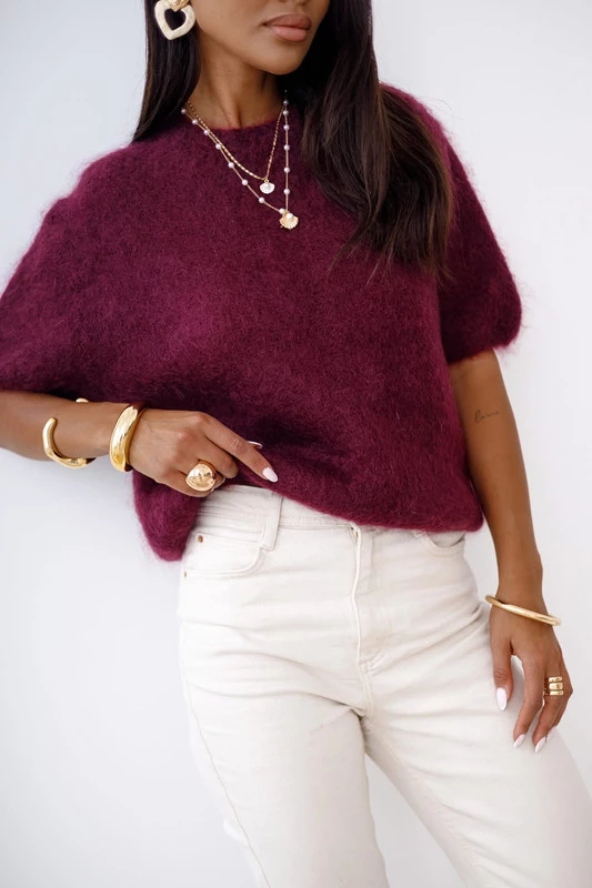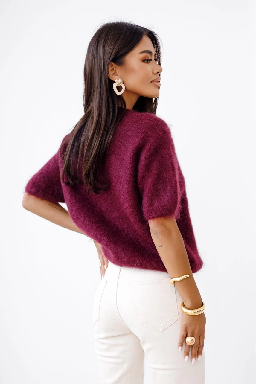 Sweter Moherowy z krótkim rękawem YARA bordowy Madame Sue