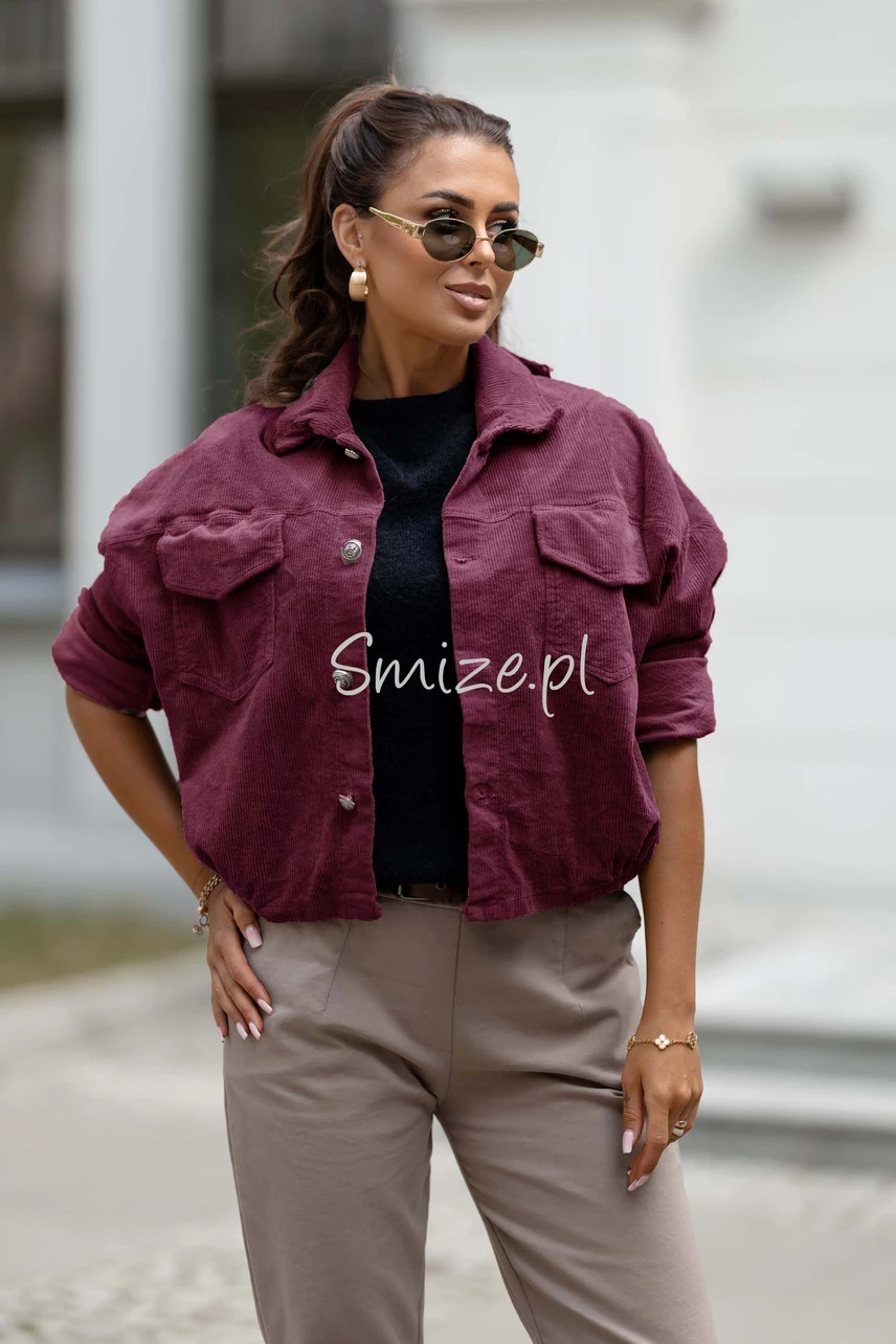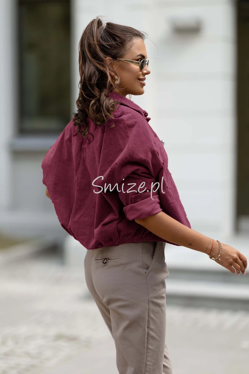 Sztruksowa kurtka damska bomberka z gumką NEST bordowy