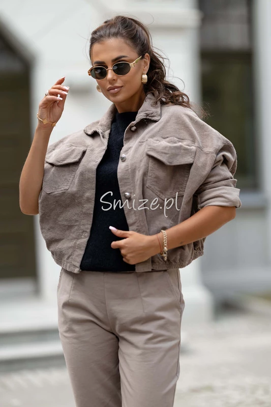 Sztruksowa kurtka damska bomberka z gumką NEST – stylowa i funkcjonalna