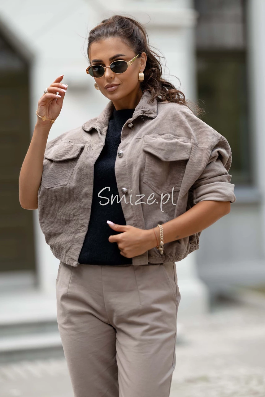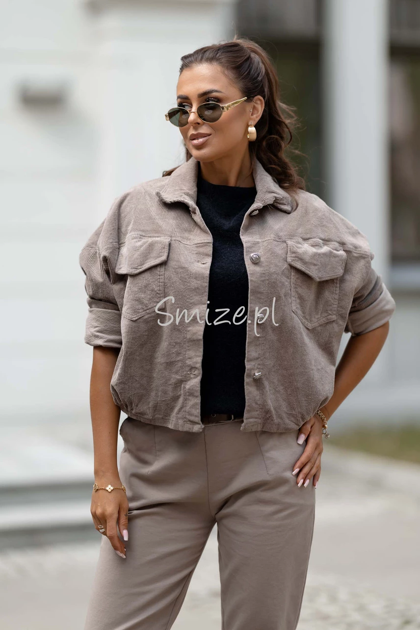 Sztruksowa kurtka damska bomberka z gumką NEST fango
