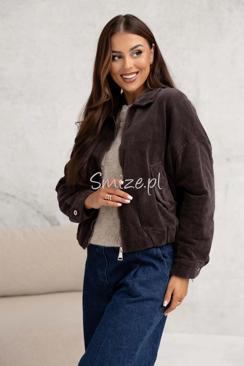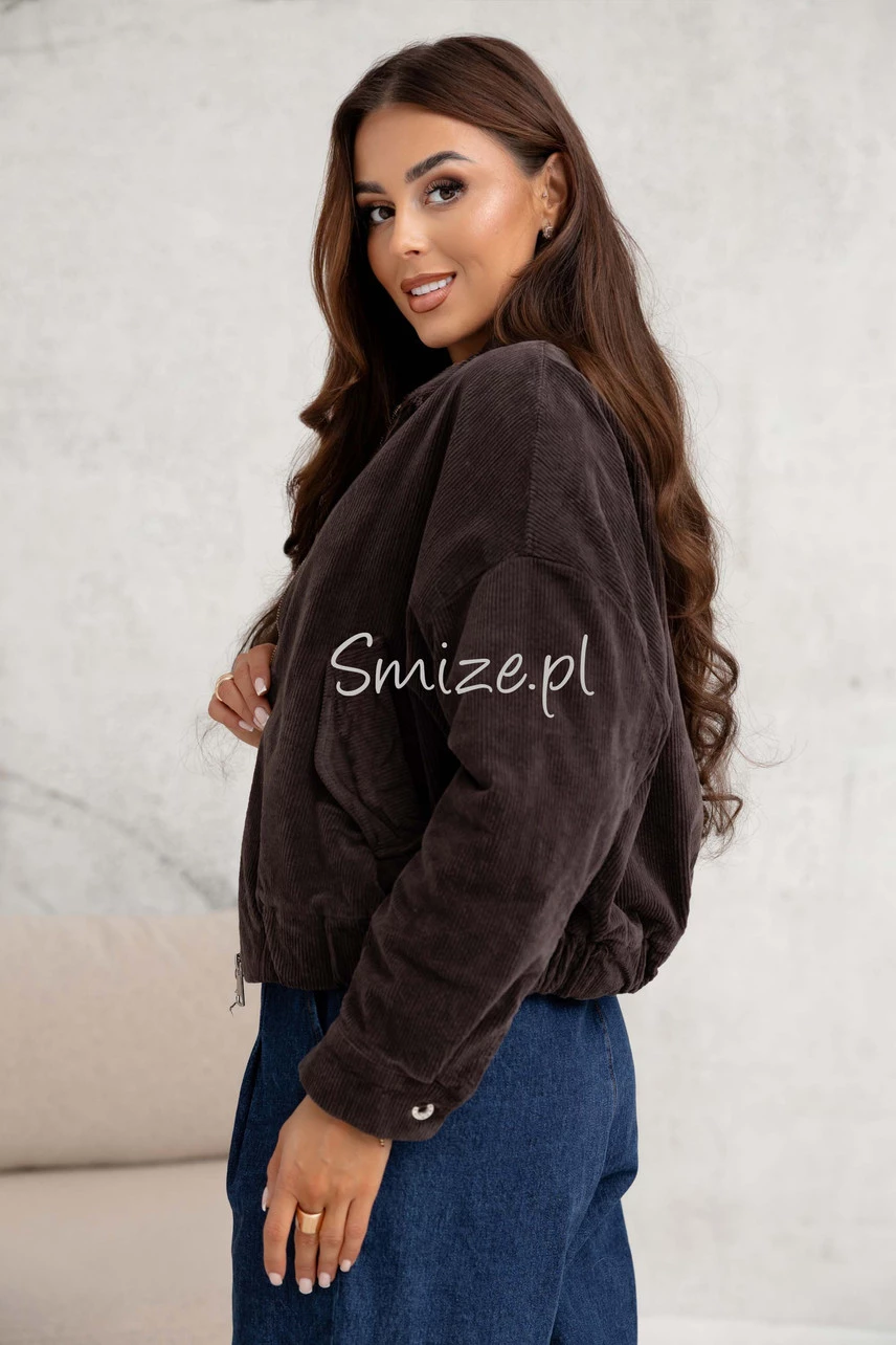 Sztruksowa kurtka damska bomberka z suwakiem NEST czekoladowa