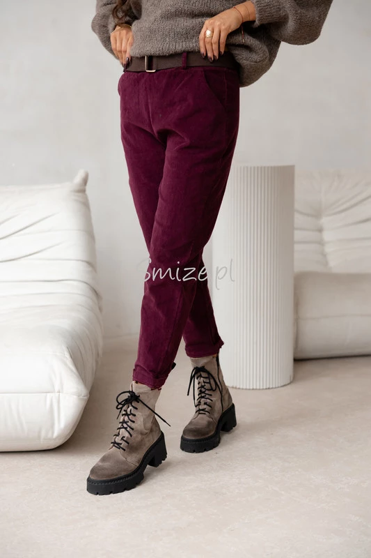 Damskie spodnie sztruksowe, bordowe