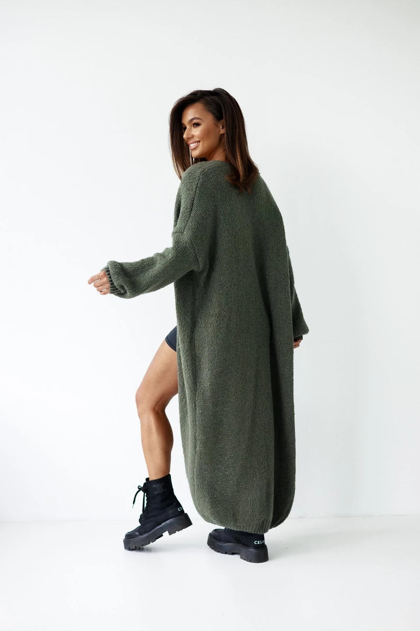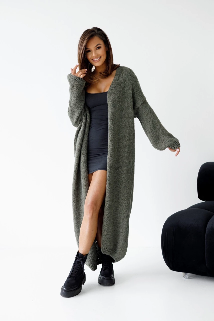 Długi Sweter, Kardigan SOFI khaki Madame Sue