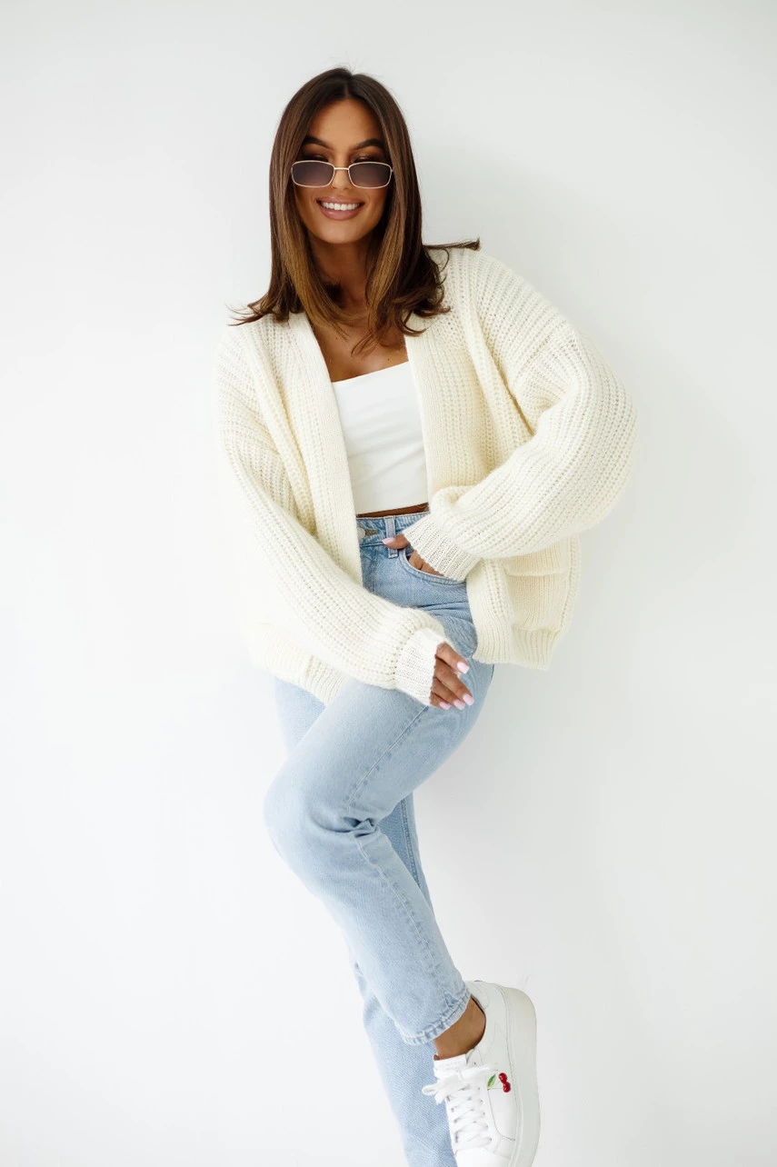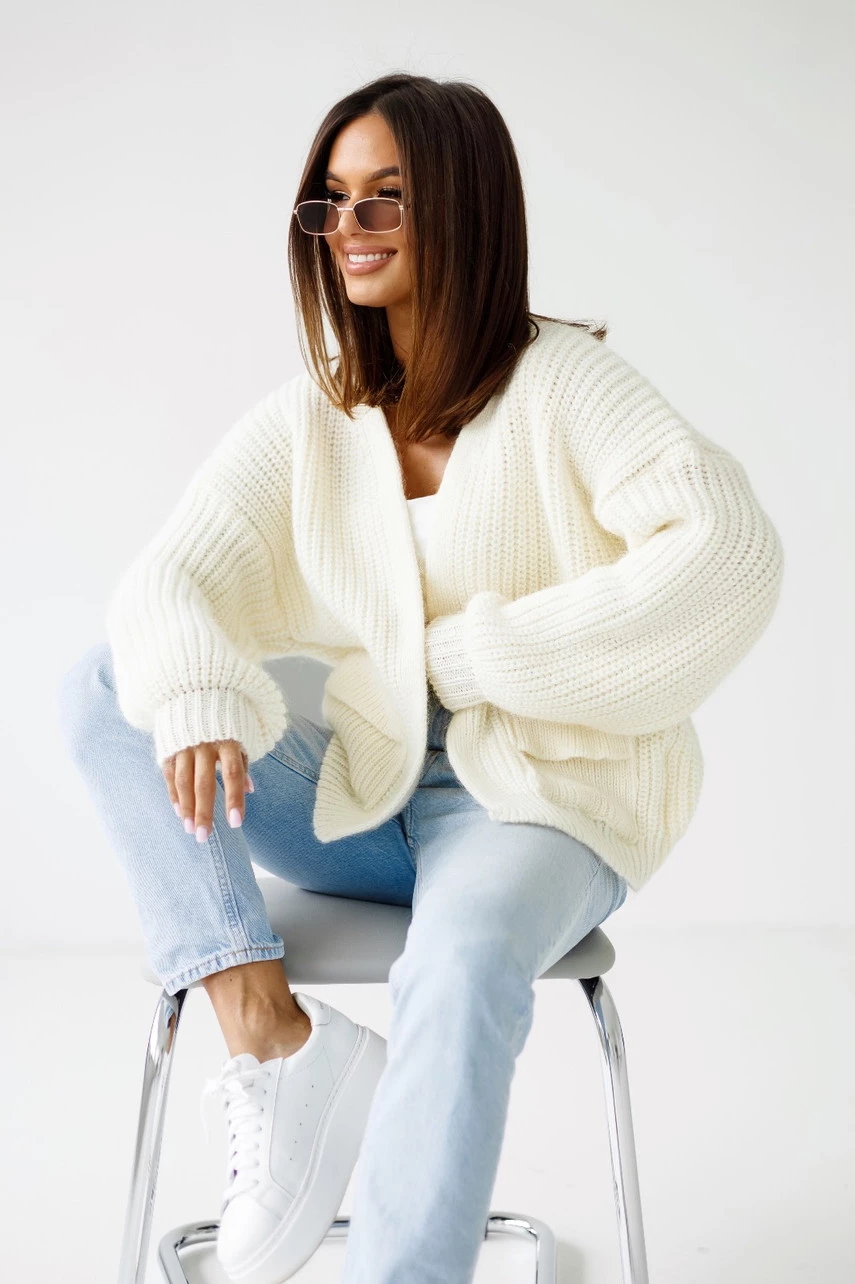 Sweter kardigan LOLA, to model wykonany z wysokiej jakości przędzy premium z dodatkiem moheru i wełny.
