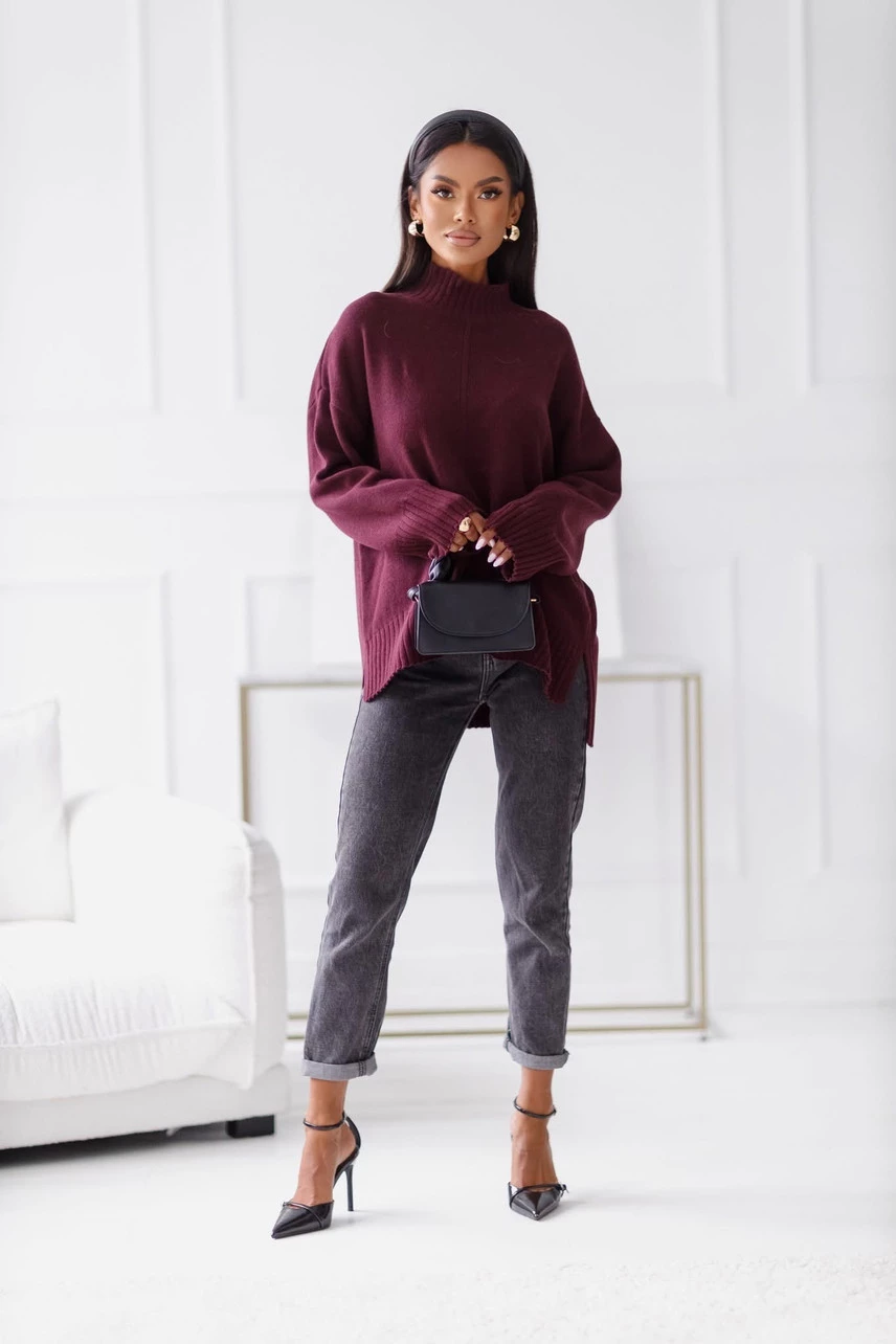 Sweter damski wełniany AURA , bakłażan Madame Sue